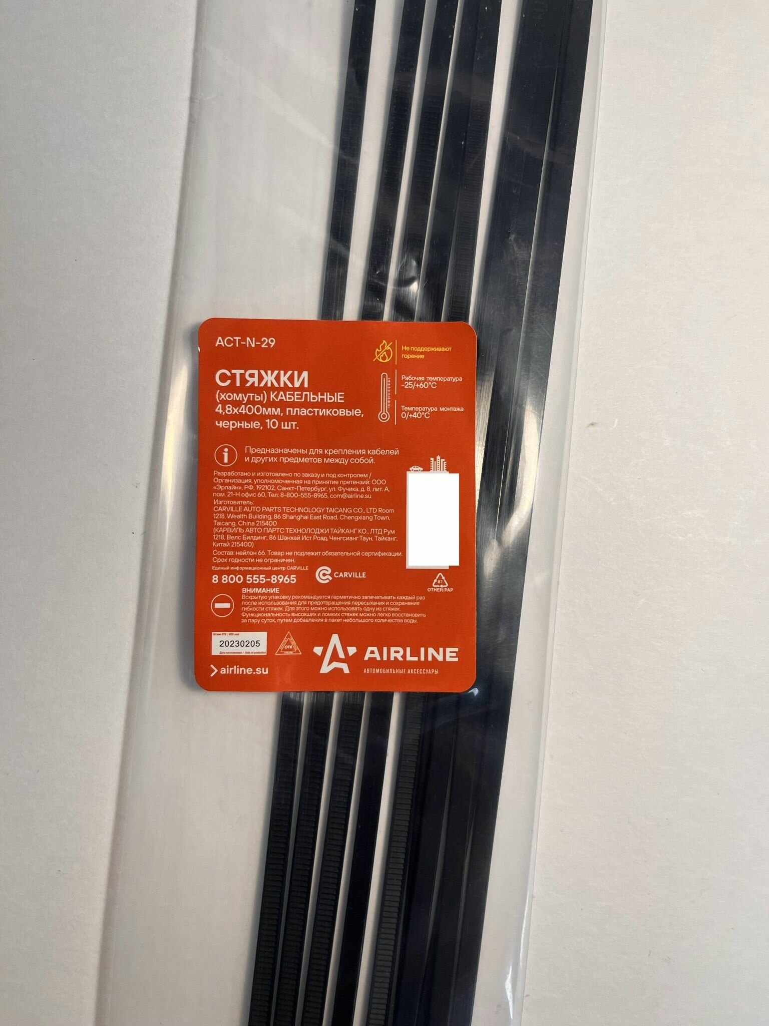 Стяжки (Хомуты) Кабельные 4,8*350 Мм, Пластиковые, Черные, 10 Шт. AIRLINE арт. ACT-N-27