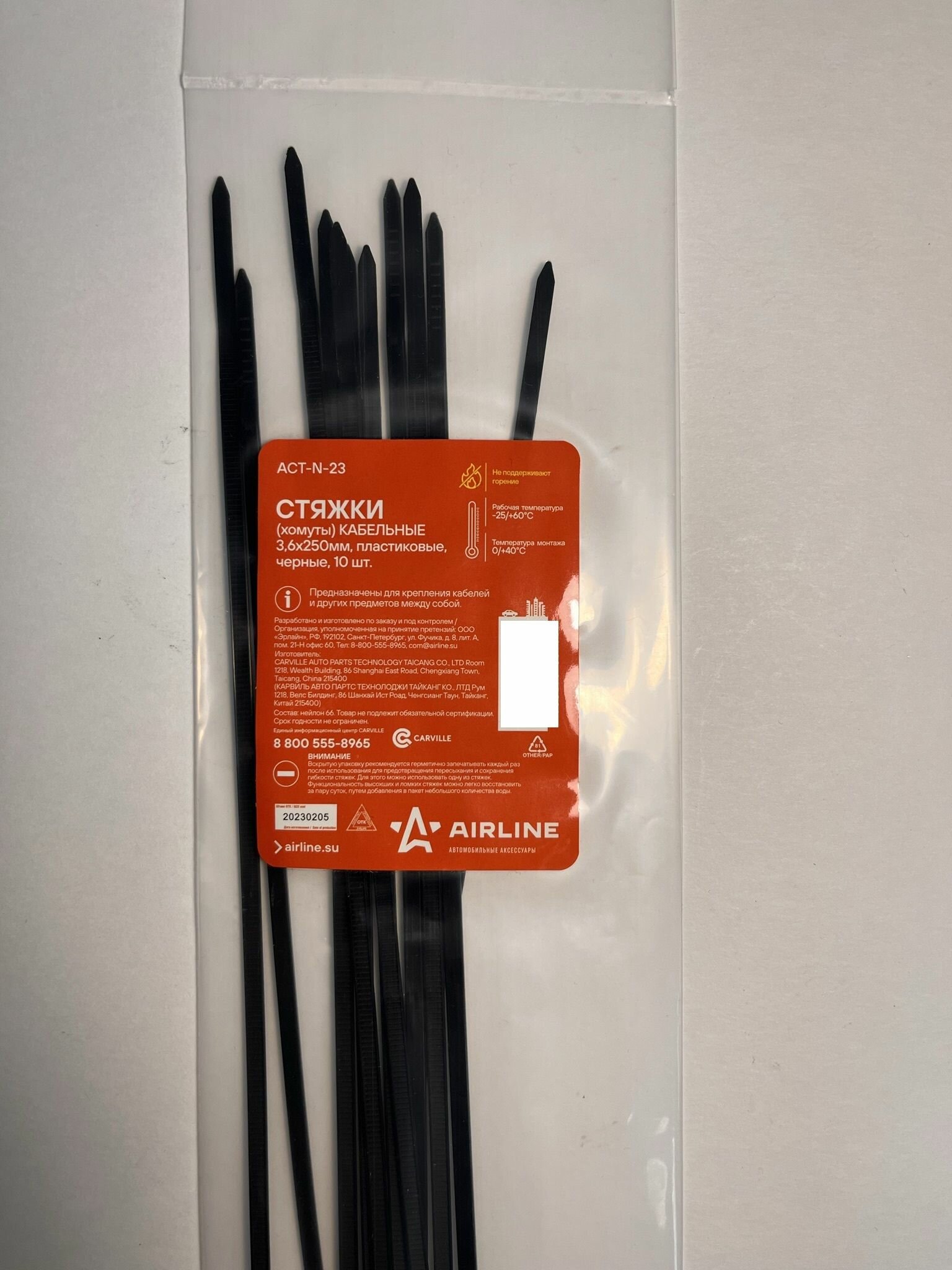 Стяжки (Хомуты) Кабельные 3,6*150 Мм, Пластиковые, Черные, 10 Шт AIRLINE арт. ACT-N-19