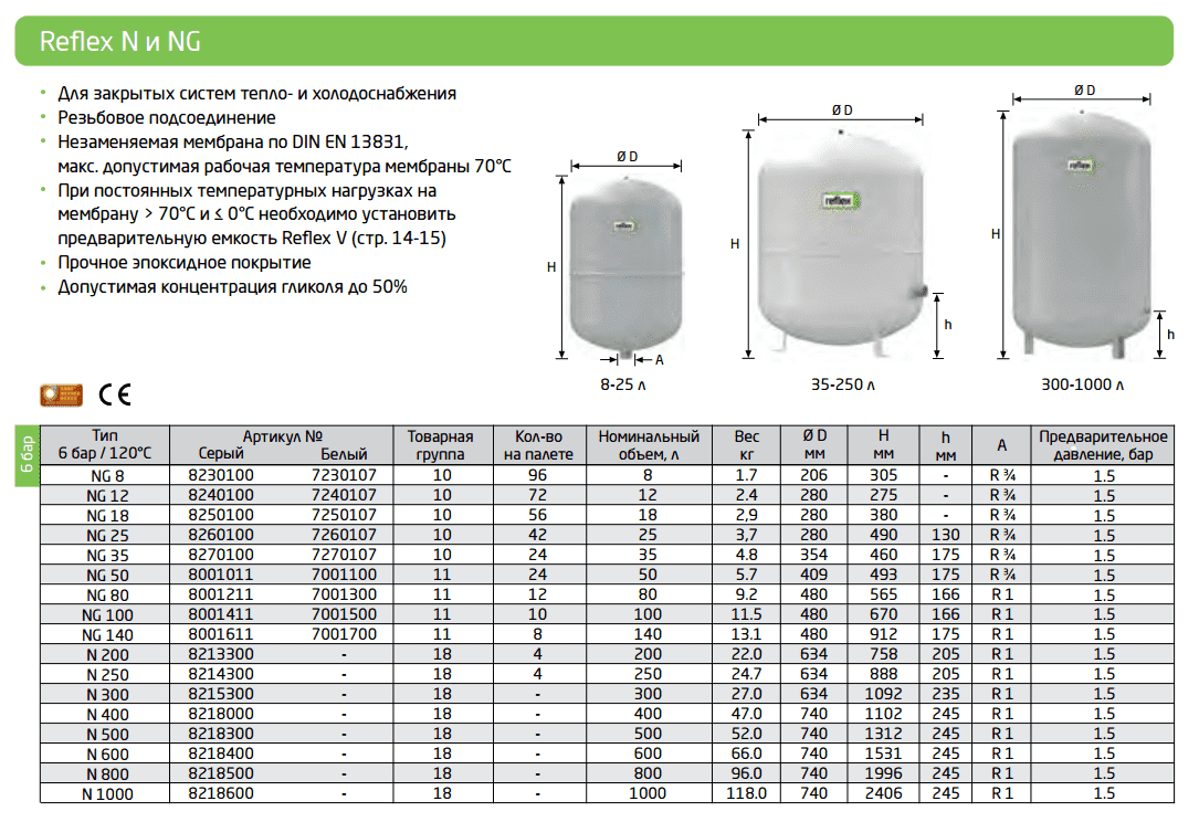 Мембранный бак для систем отопления REFLEX N 8 (белый) интересное: