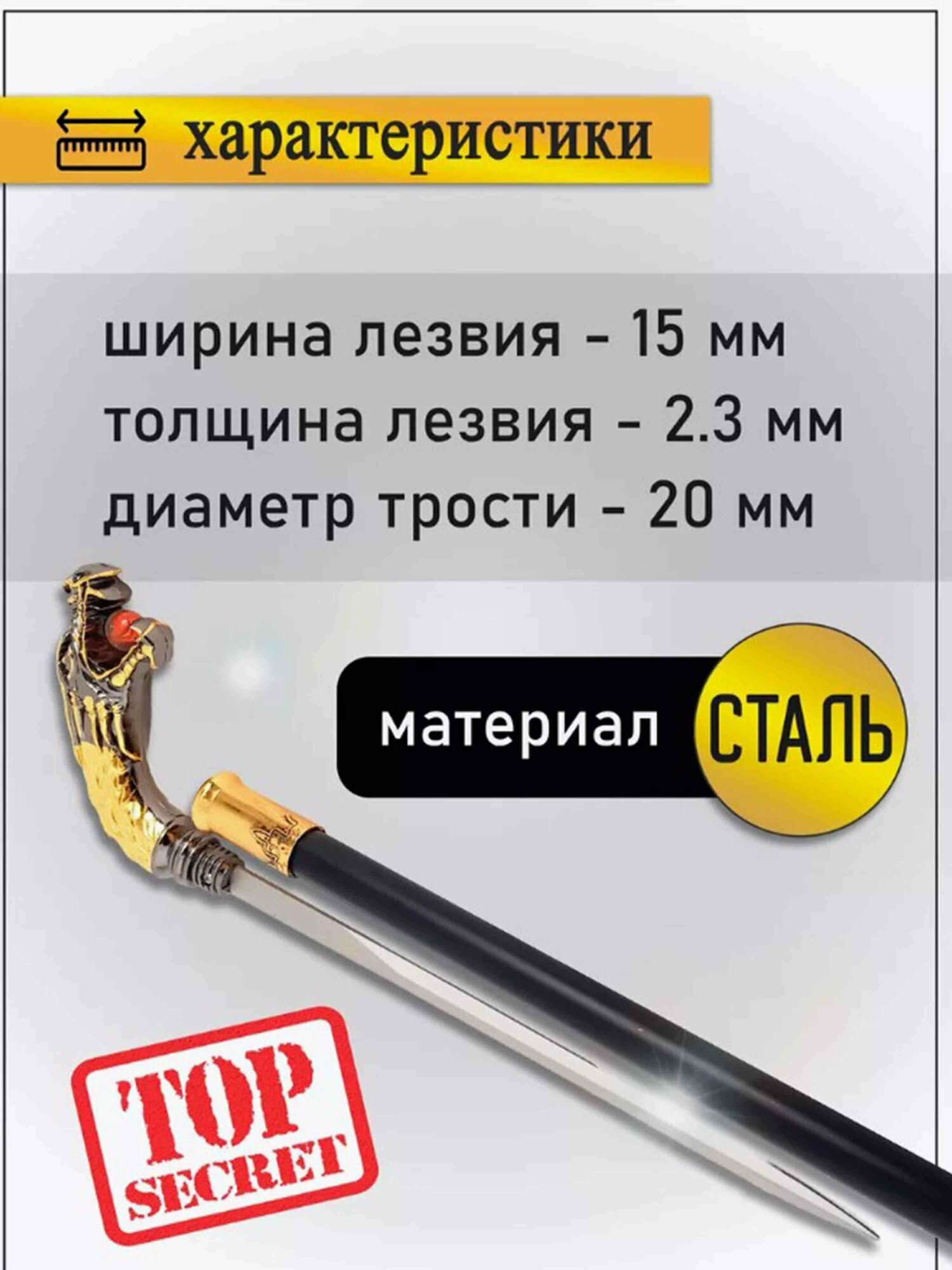 | Дополнительная информация | Внутри трости находится стальной стилет длиной 288 мм. |