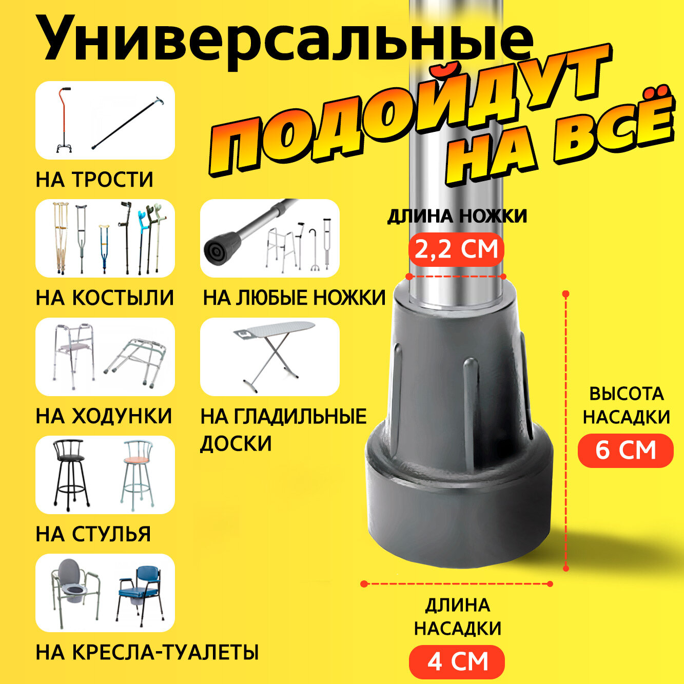 Наконечник на трость, костыль, ходунки, насадка на ножки 22 мм для кресло-туалета 2 шт. серые интересное: