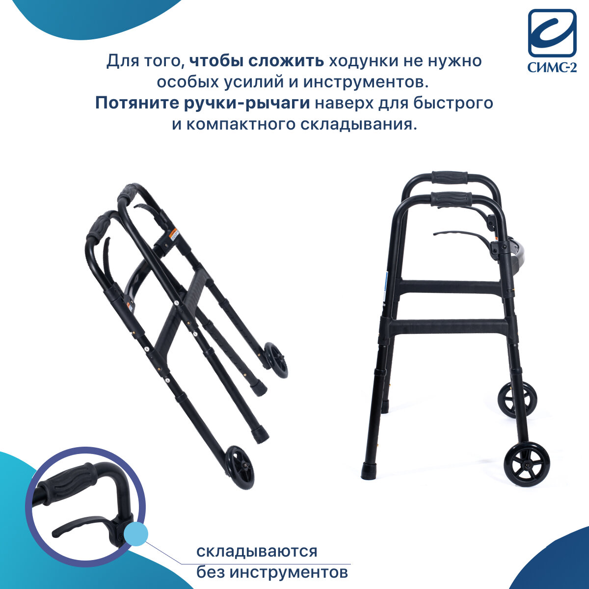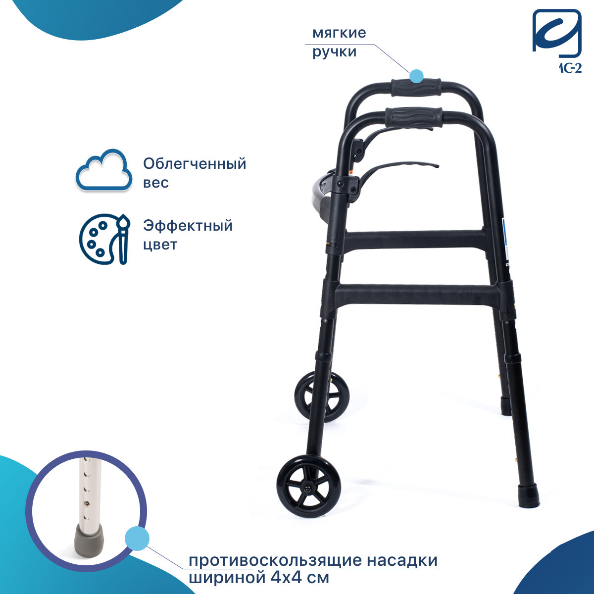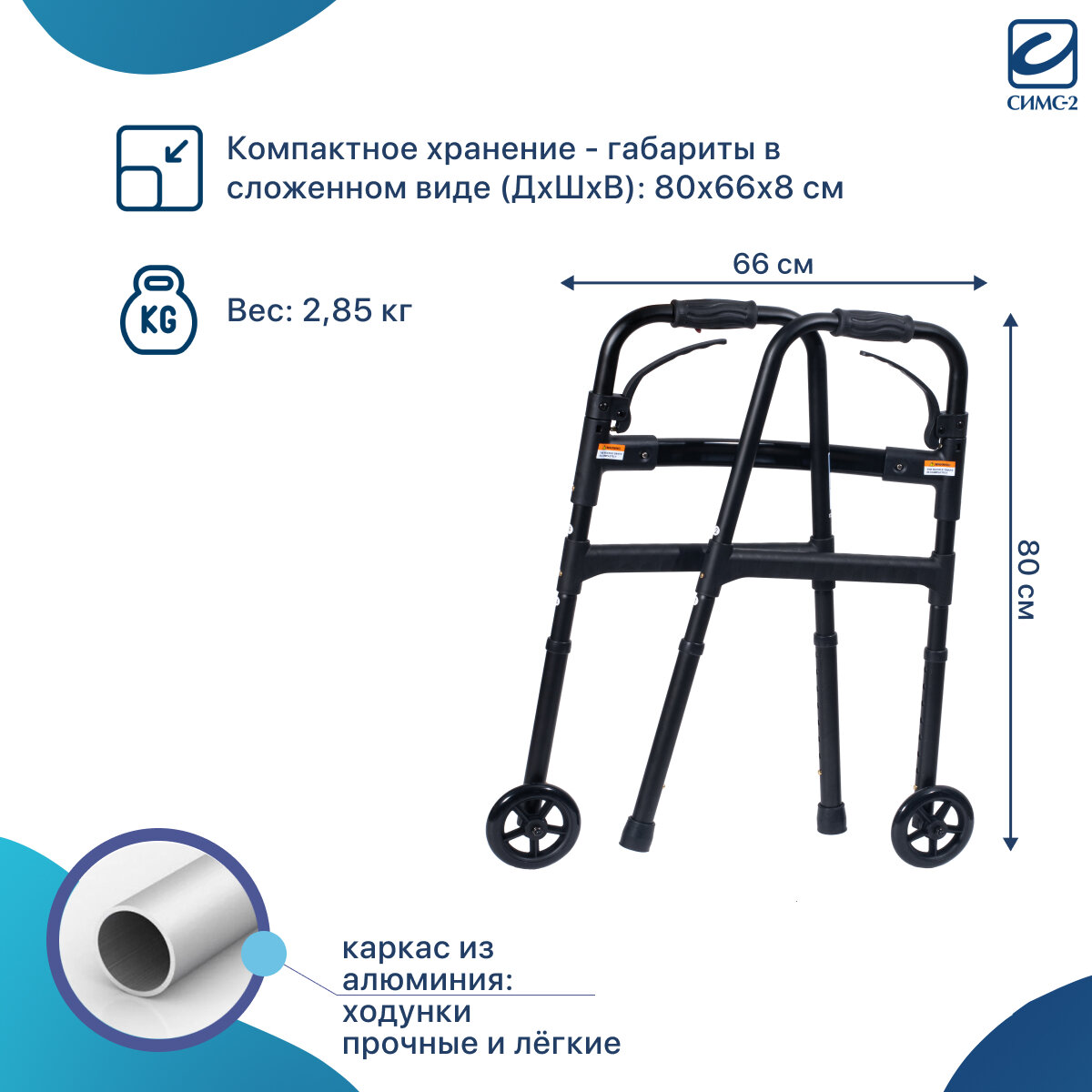 Ходунки инвалидные медицинские складные универсальные на колёсах с регулировкой высоты облегченные для ходьбы взрослых, больных, пожилых, инвалидов, реабилитация после операции травм перелома 10180-W