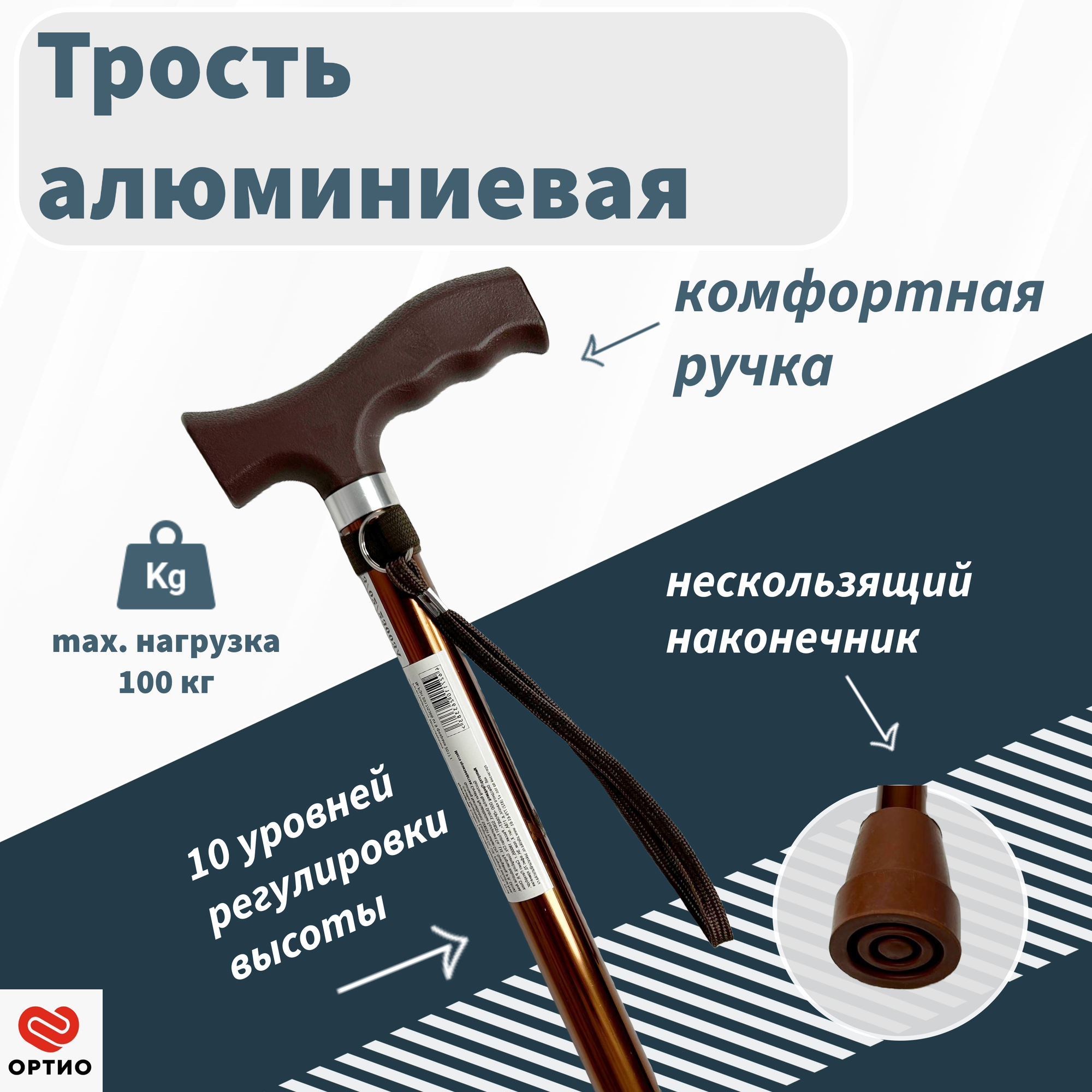 | Особенности трости | ортопедическая рукоятка / ремешок на кисть |