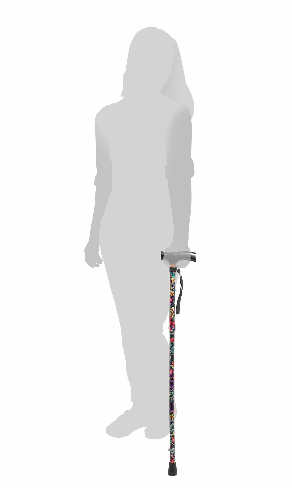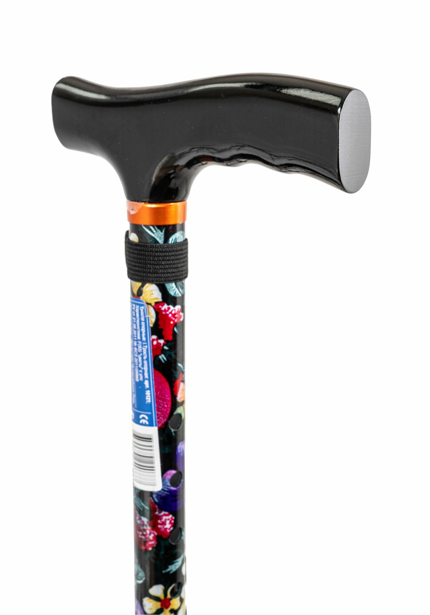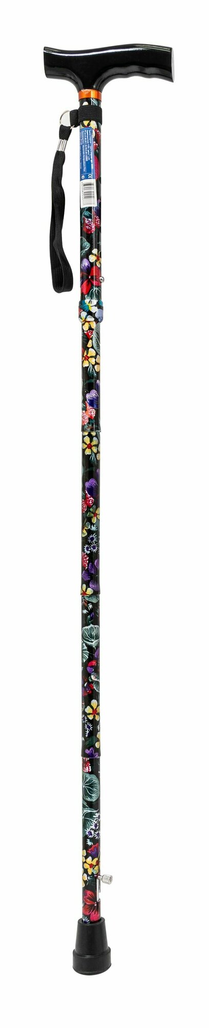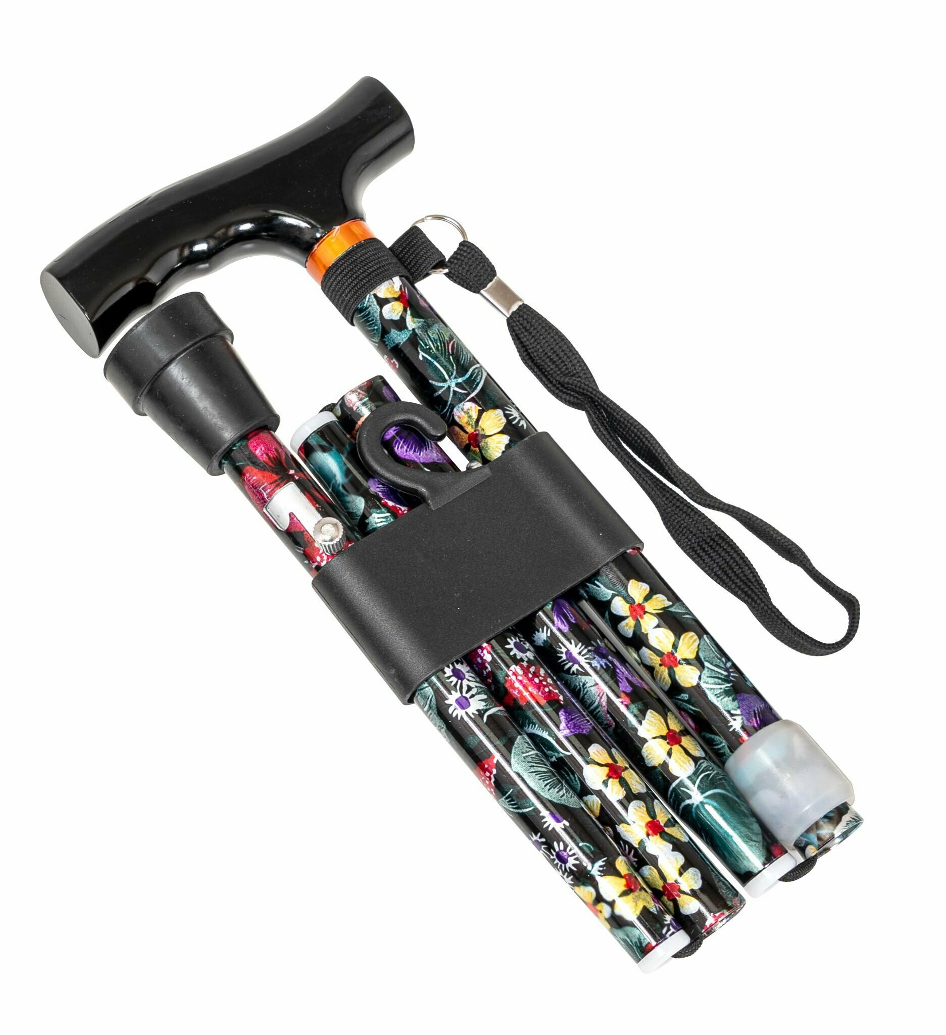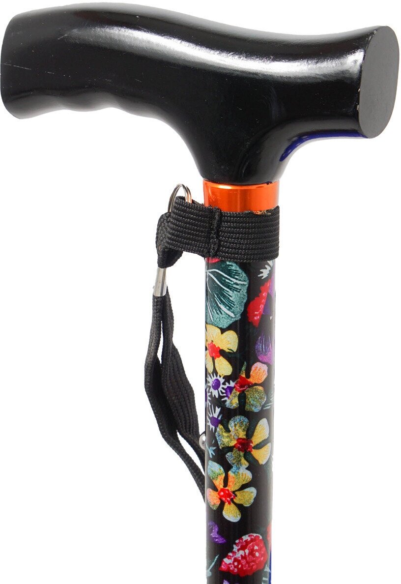 Купить Трость cкладная опорная с Т-образной деревянной ручкой 10121, расцветка "цветы" с УПС, для ходьбы, для взрослых, пожилых людей и инвалидов