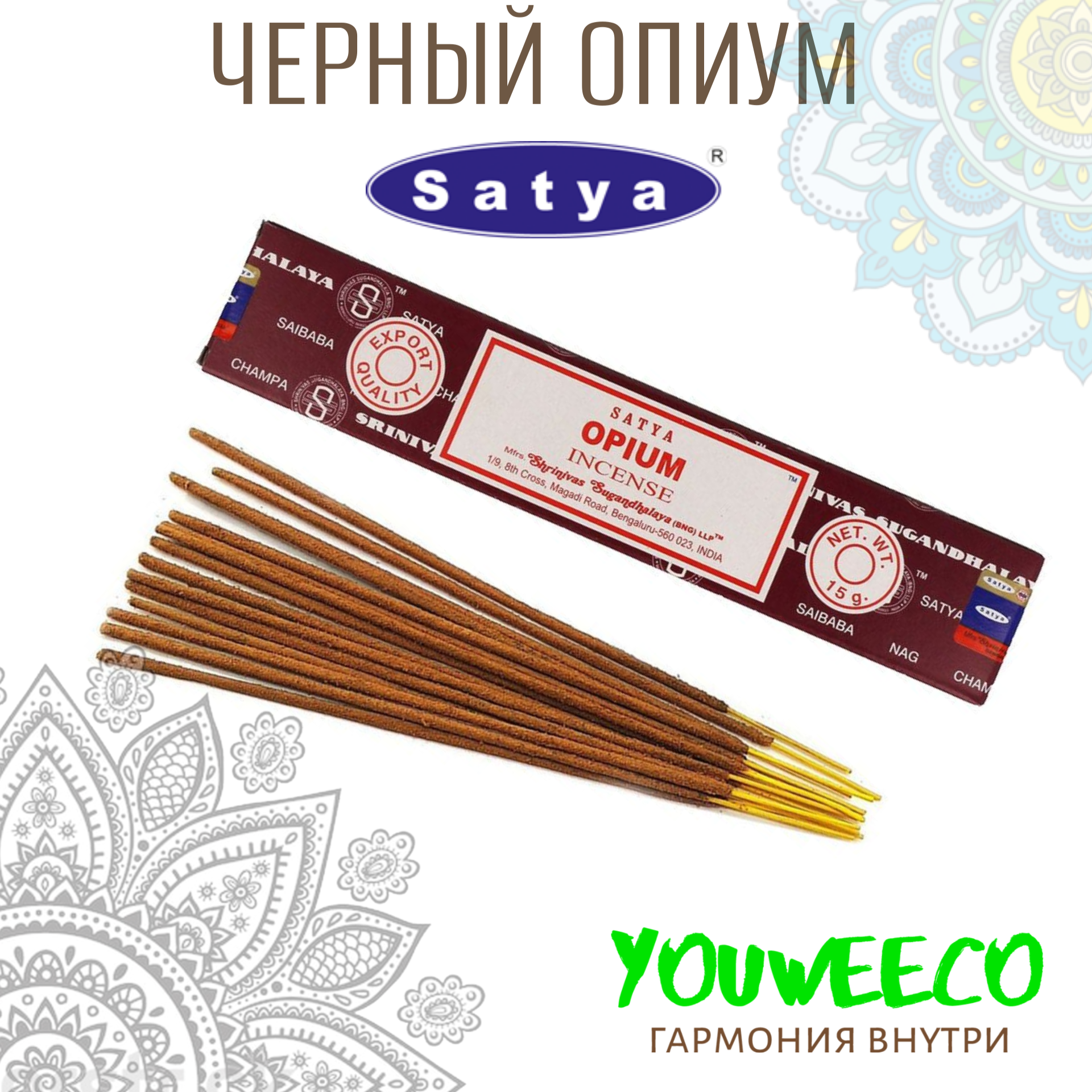 Благовония Opium Incense (Опиум) Ароматические индийские палочки для дома, йоги и медитации, Satya (Сатья), 15г