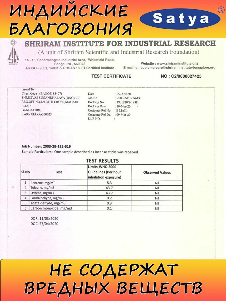 | Дополнительная информация | Высококачественные индийские благовония Satya приготовлены вручную по традиционным рецептам. |