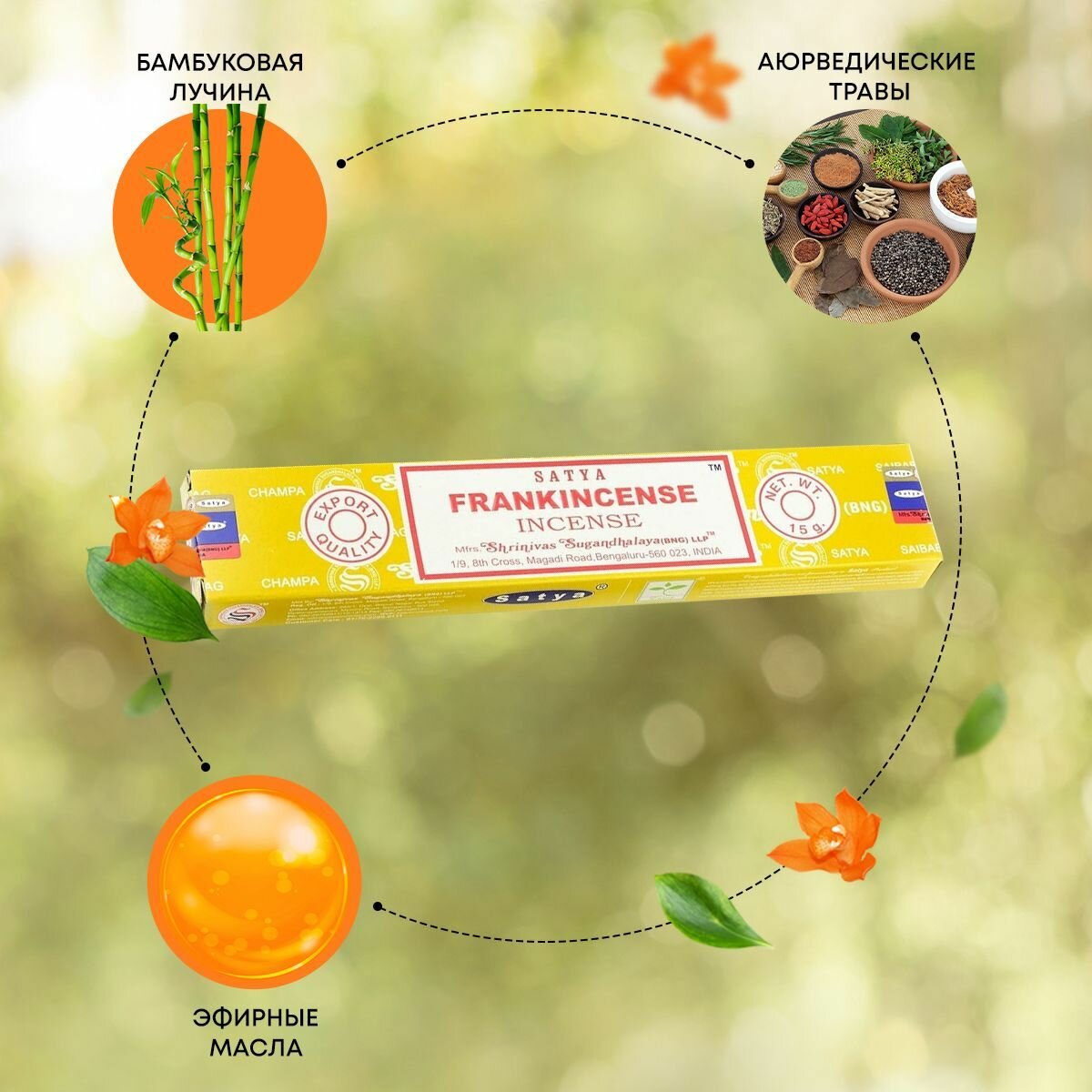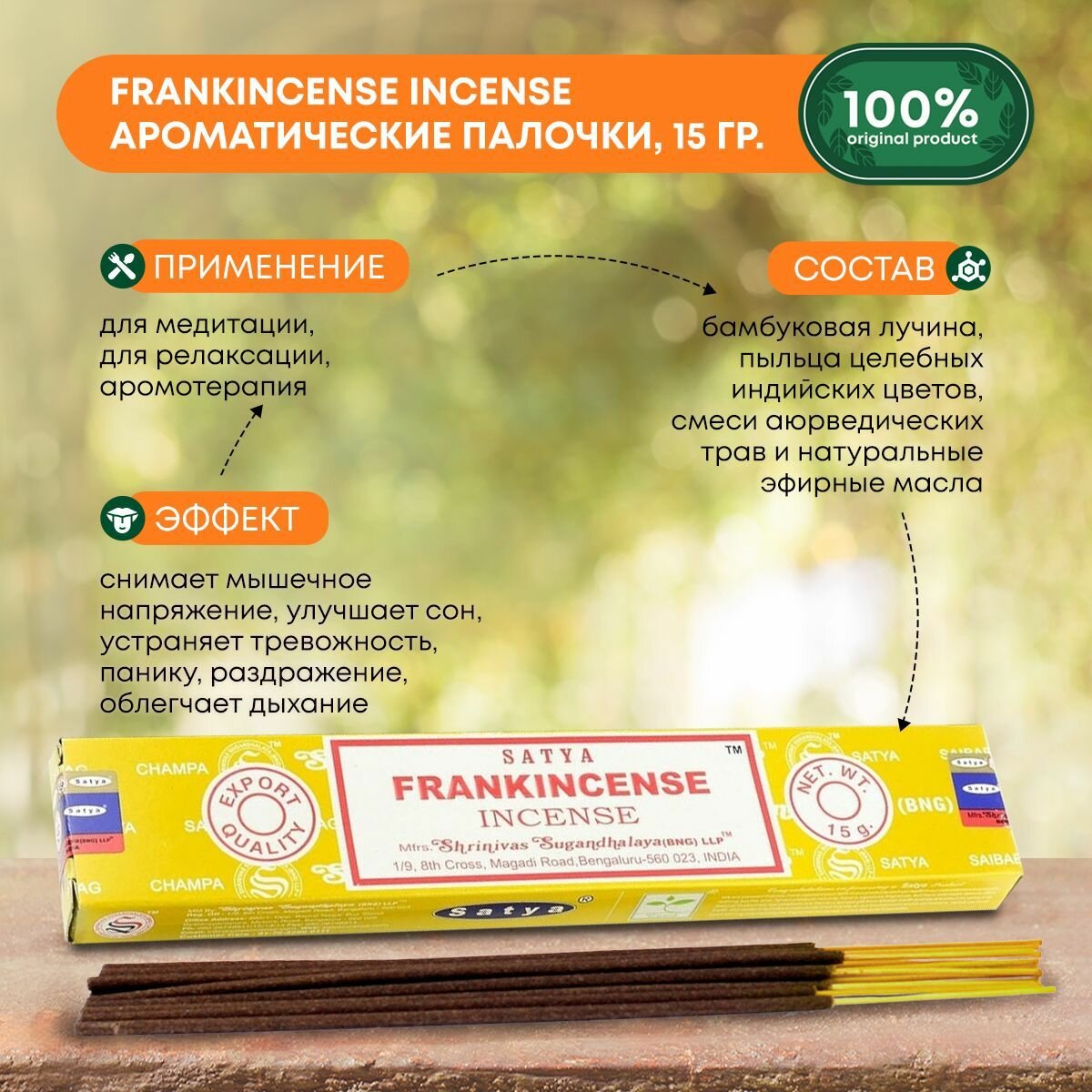 Купить Благовония Frankincense Incense (Ладан) Ароматические индийские палочки для дома, йоги и медитации, Satya (Сатья), 15г