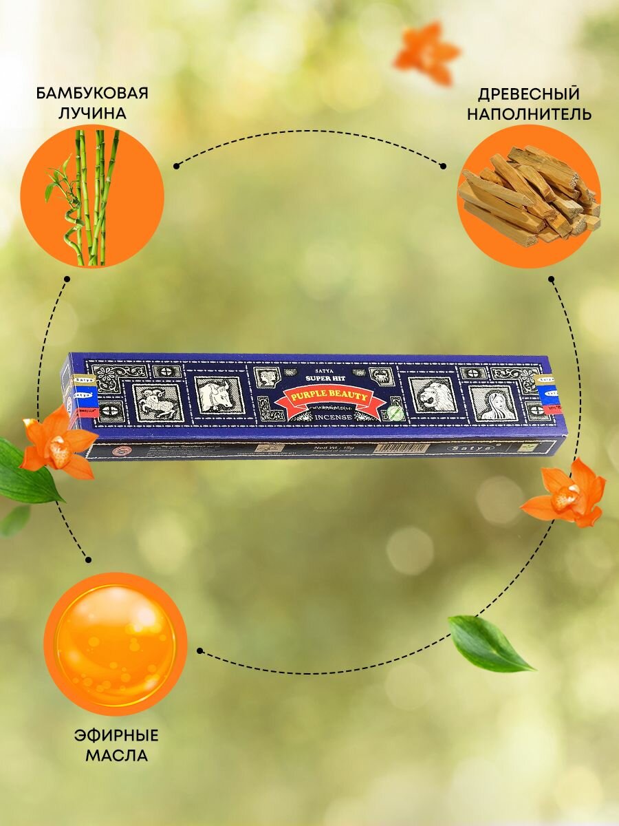 Купить Ароматические палочки благовония Satya Сатья Пурпурная Красавица серия Супер Хит Super Hit Series Purple Beauty, 15 гр