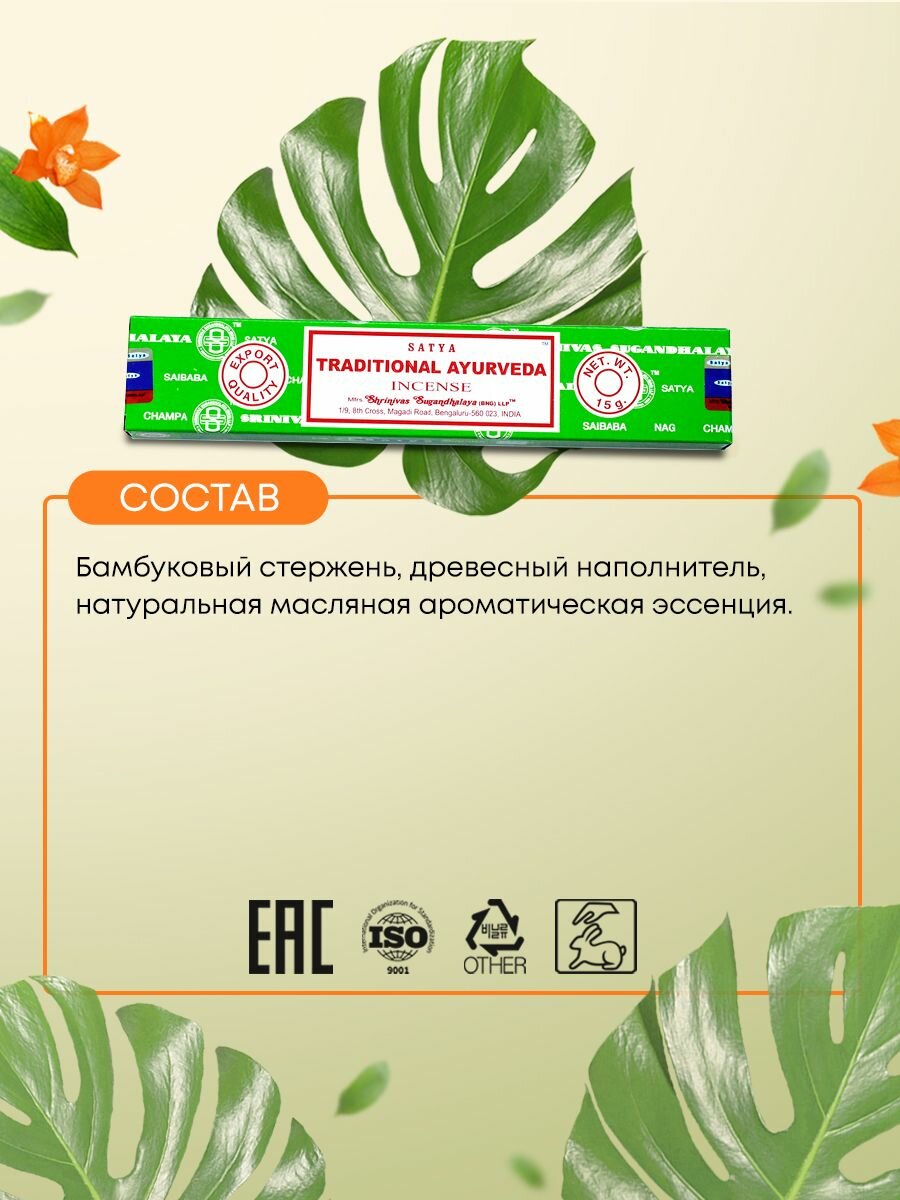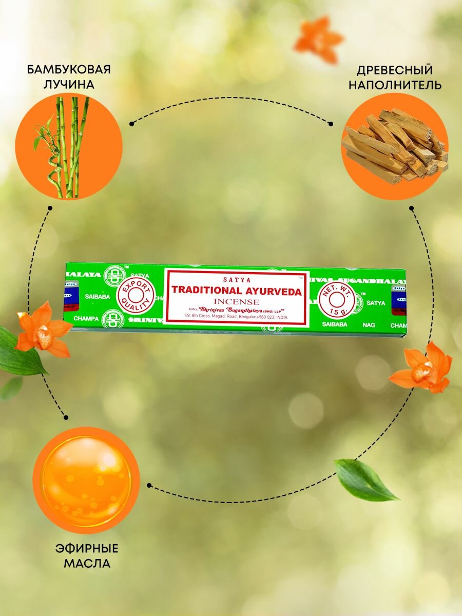 Купить Благовония Traditional Ayurveda Incense (Традиционная аюрведа) Ароматические индийские палочки для дома, йоги и медитации, Satya (Сатья), 15г