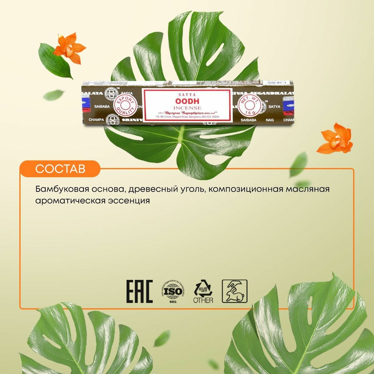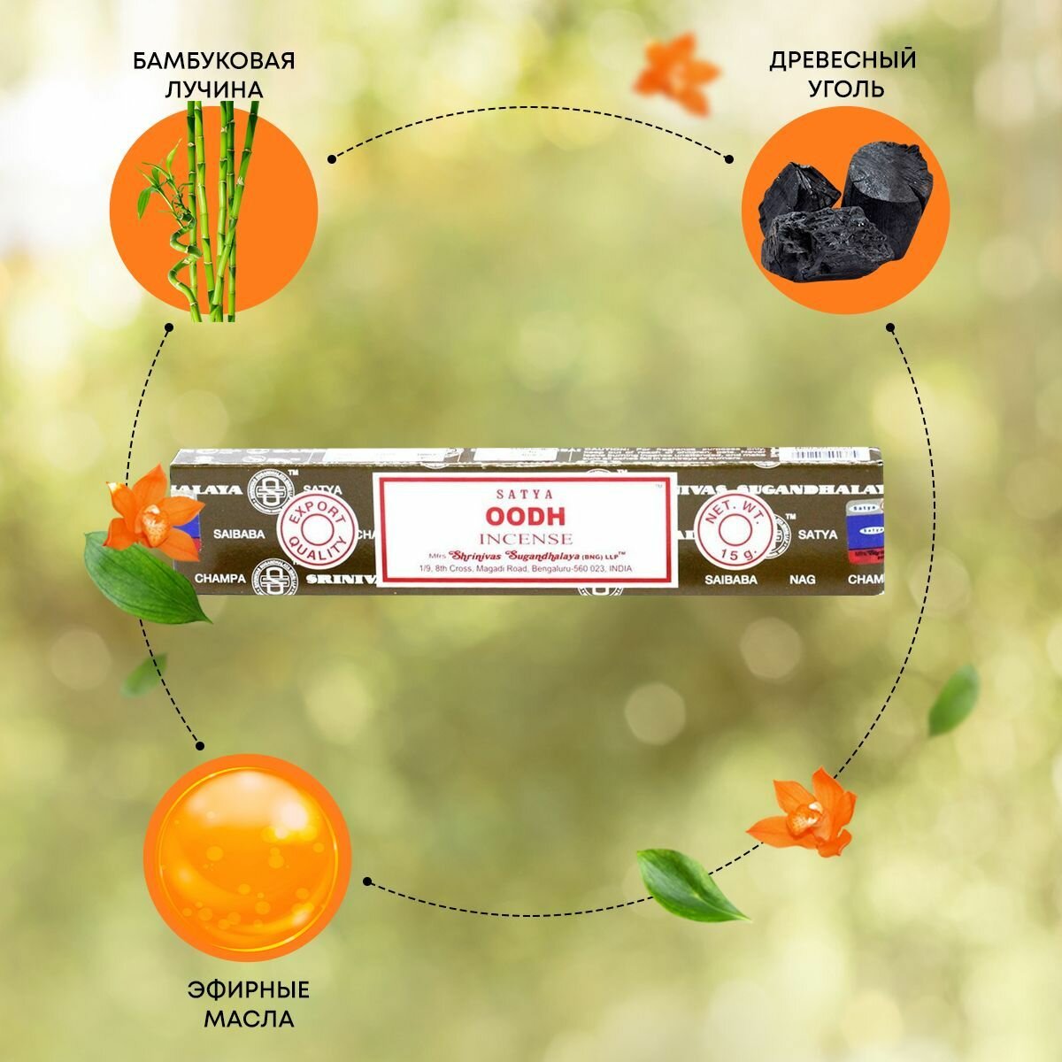 Купить Благовония Oodh Incense (Уд) Ароматические индийские палочки для дома, йоги и медитации, Satya (Сатья), 15г