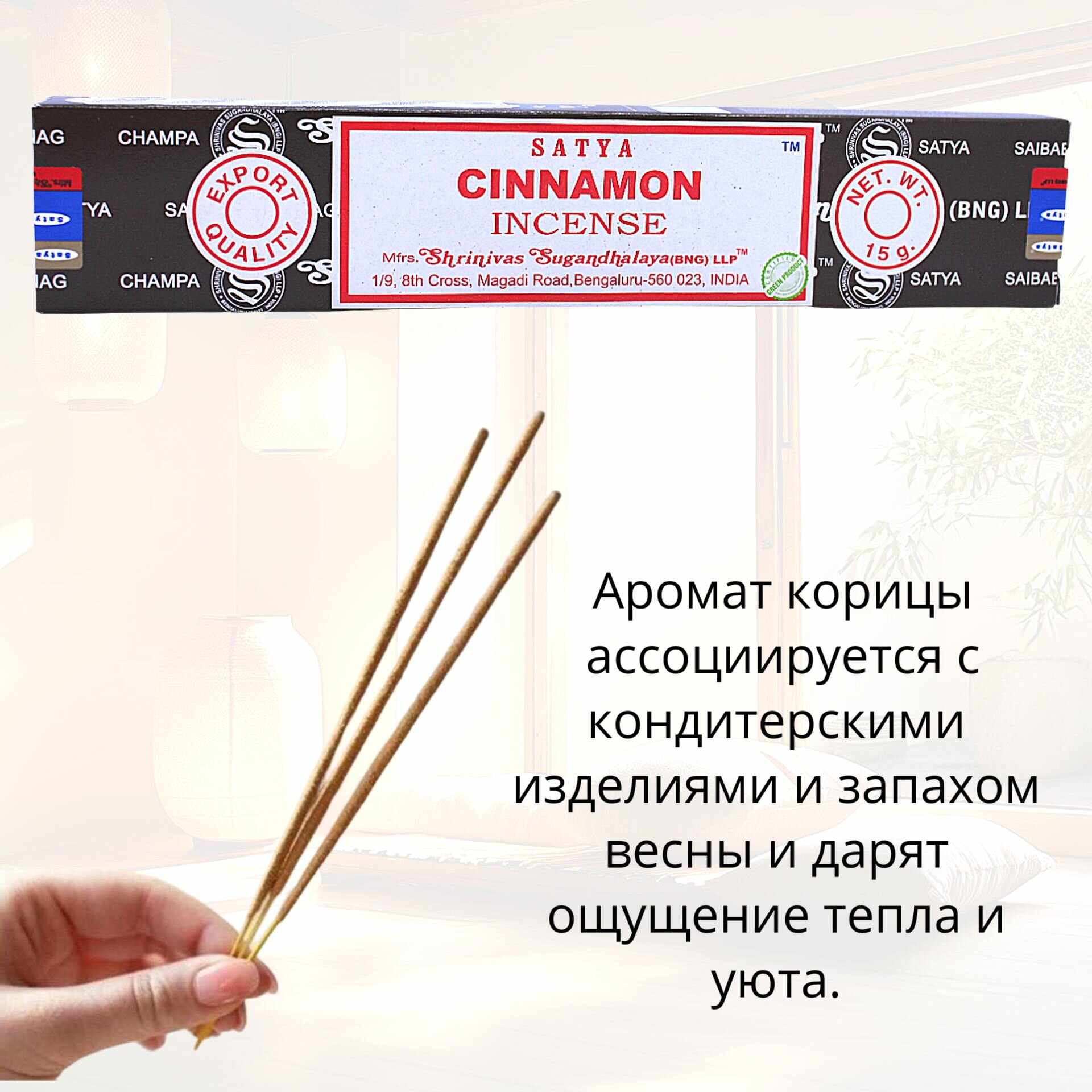 | Дополнительная информация | Высококачественные индийские благовония Satya приготовлены вручную по традиционным рецептам. |