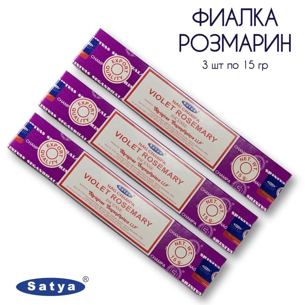 Купить Набор Satya Фиалка Розмарин - 3 упаковки по 15 гр - ароматические благовония, палочки, Violet Rosemary - Сатия, Сатья