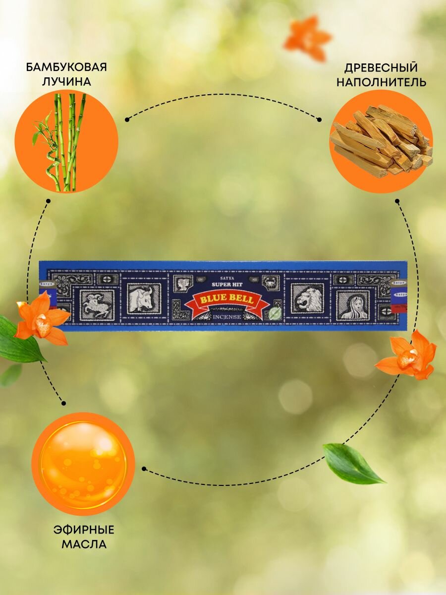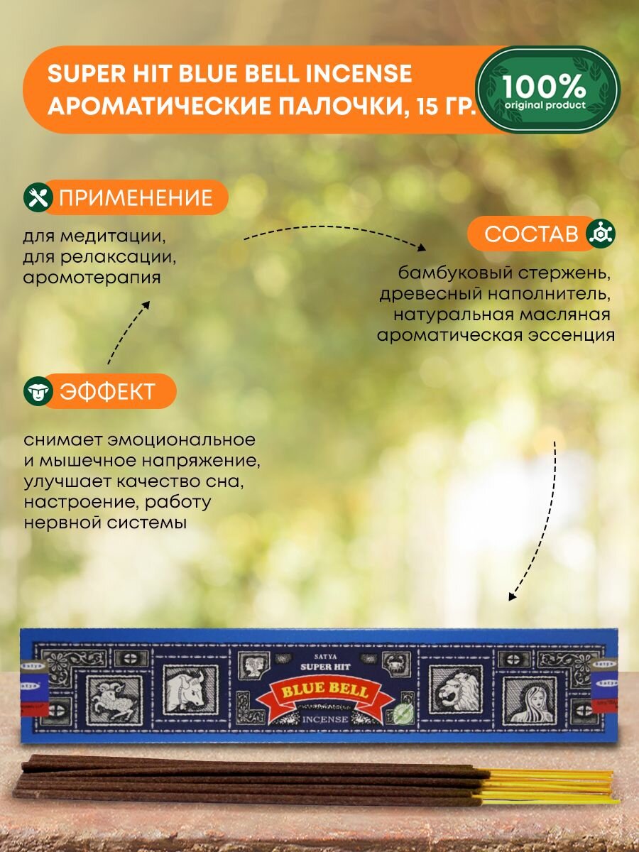 Купить Благовония Super Hit Blue Bell Incense (Супер Хит Синий колокольчик) Ароматические индийские палочки для дома, йоги и медитации, Satya (Сатья), 15г