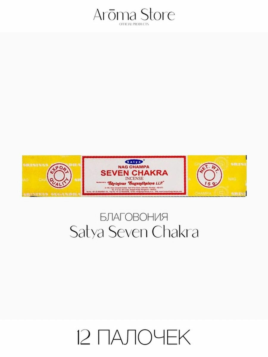 Благовония Сатья Семь Чакр, ароматические палочки, индийские, для дома, медитации,Satya Seven Chakra, 15г