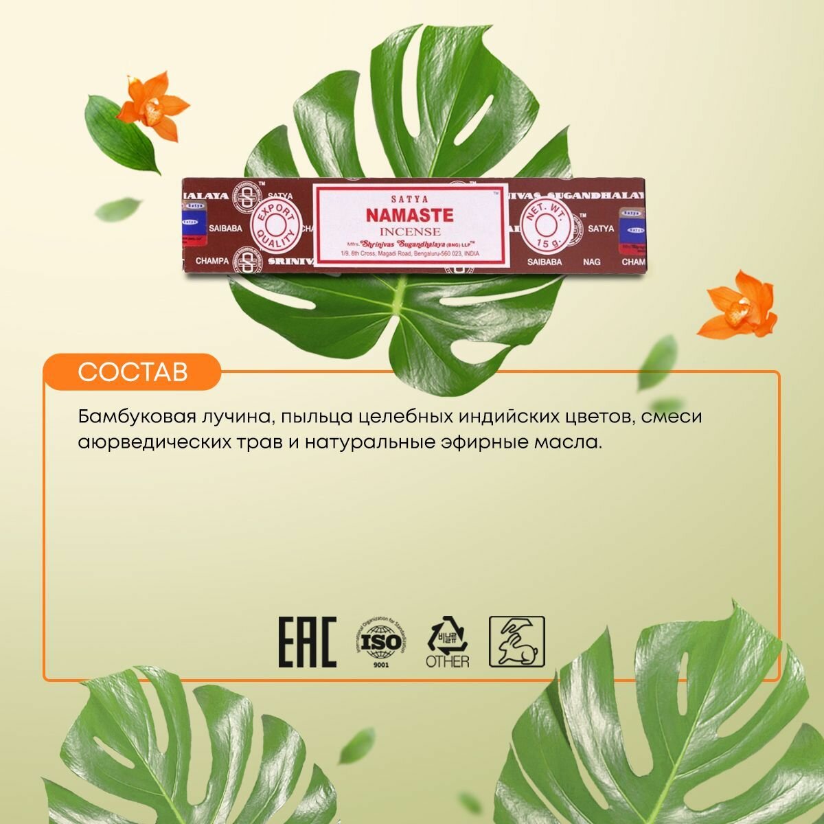 СохранитьБлаговония Namaste Incense (Намасте) Ароматические индийские палочки для дома, йоги и медитации, Satya (Сатья), 15г интересное:
