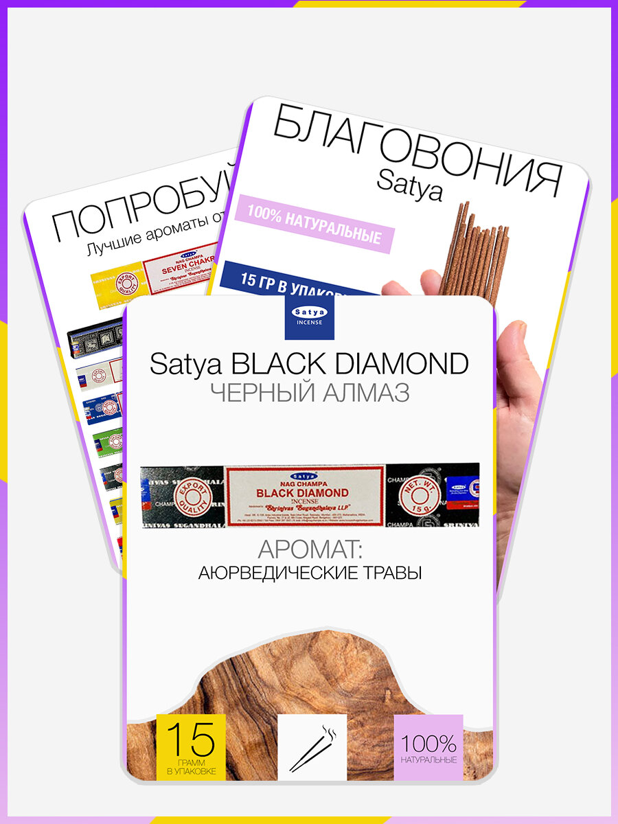 СохранитьБлаговония Satya Black Diamond Черный Алмаз, аромапалочки, 15 гр интересное: