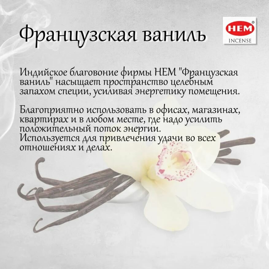 Благовония HEM "Французская Ваниль.French Vanilla", 20 палочек в упаковке, шестигранник 7064549 интересное: