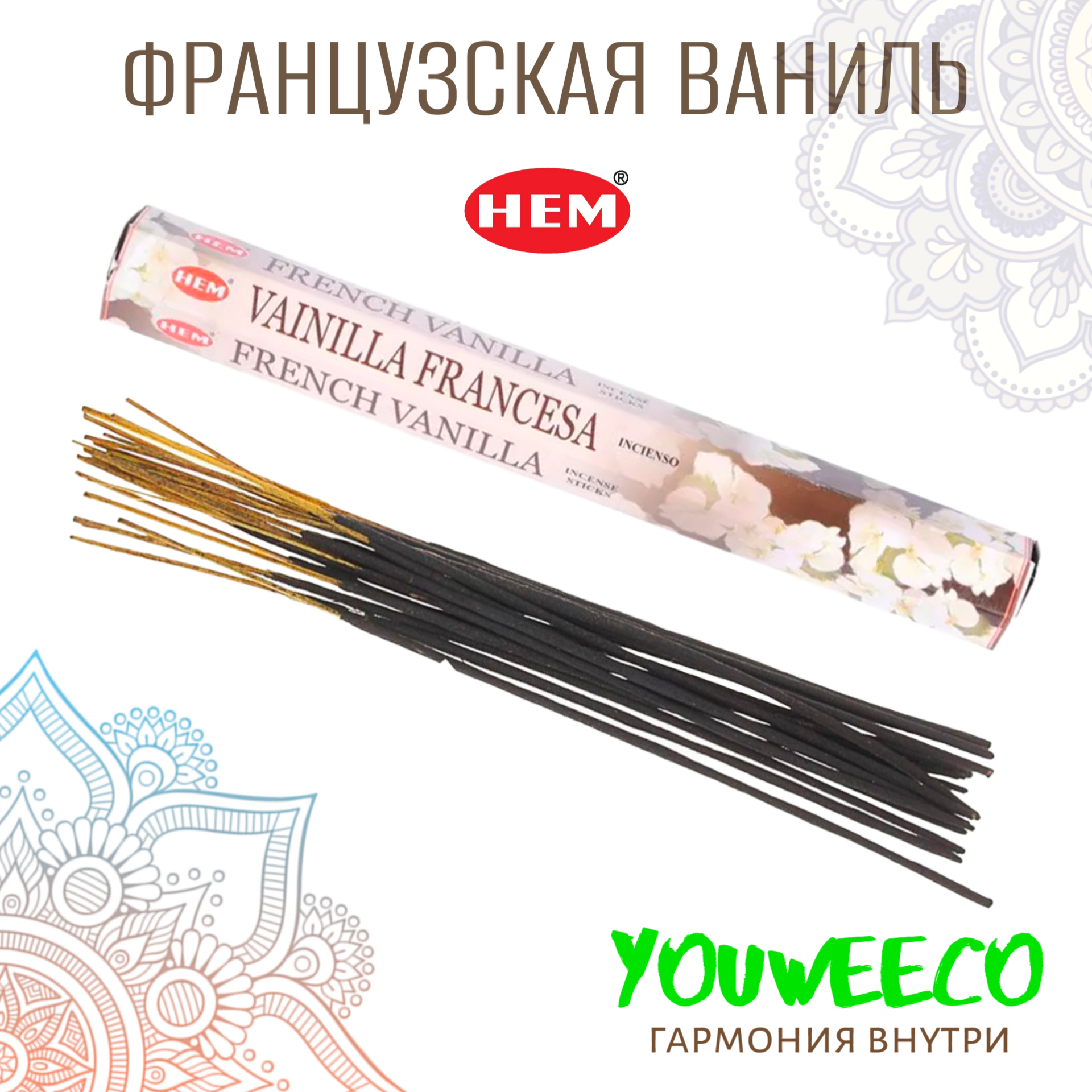 Благовония HEM French Vanilla (Французская ваниль) , 20 палочек.