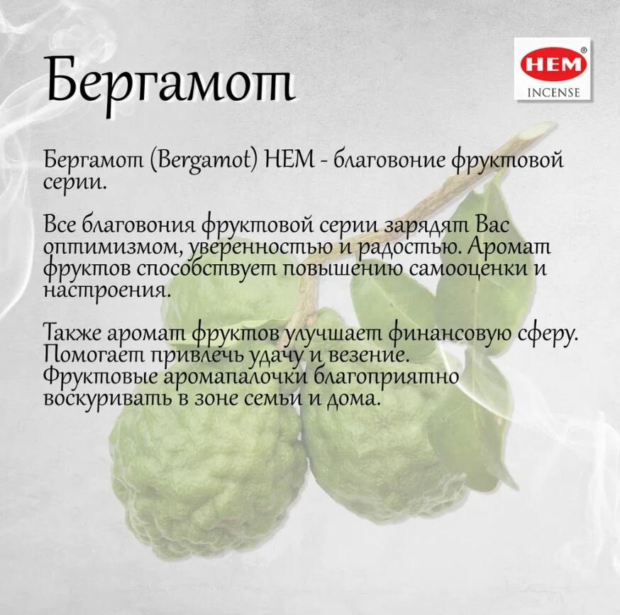 СохранитьБлаговония HEM "Bergamot. Бергамот", 20 палочек в упаковке, шестигранник интересное: