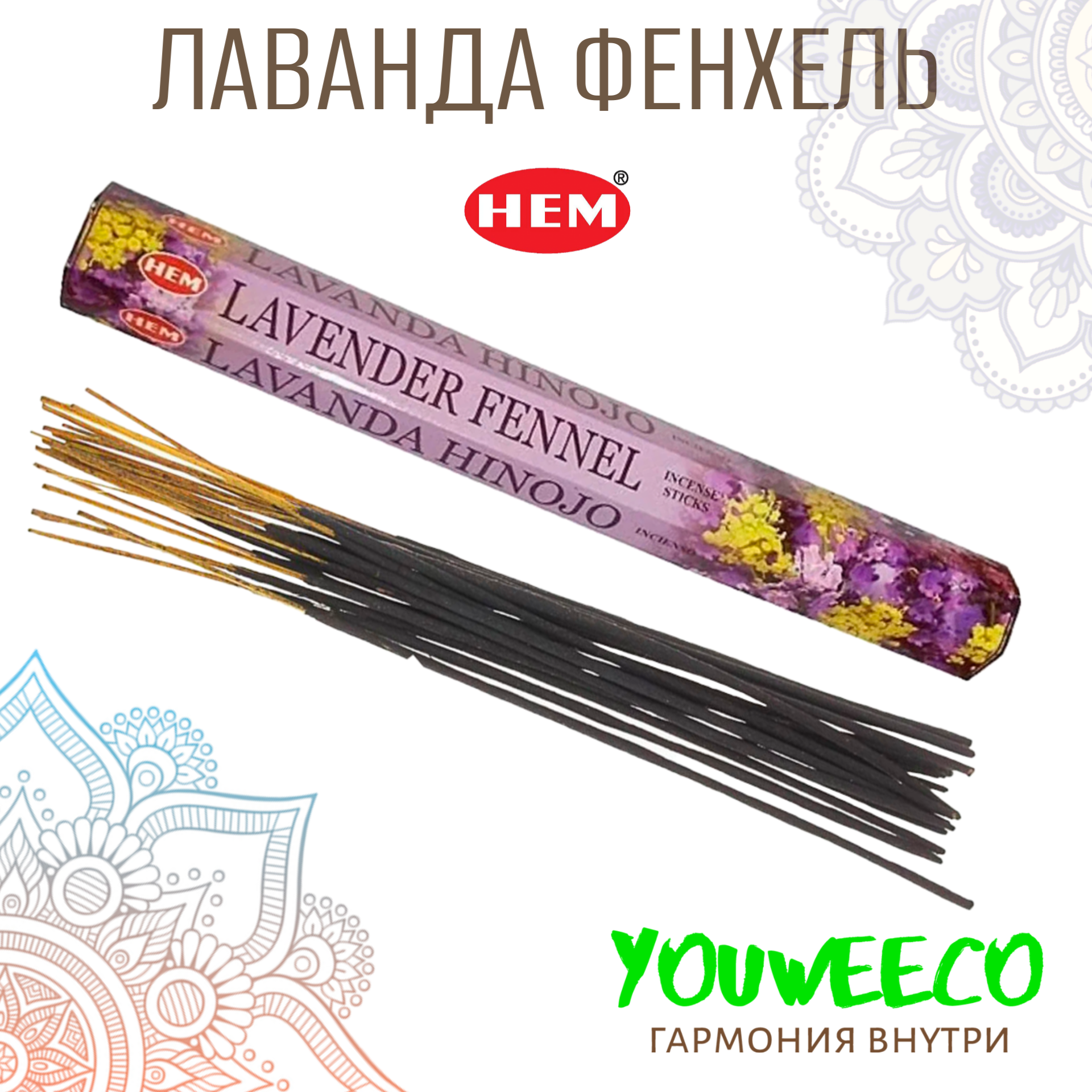 Купить HEM Лаванда Фенхель - 20 шт, ароматические благовония, палочки, Lavender Fennel - Hexa ХЕМ