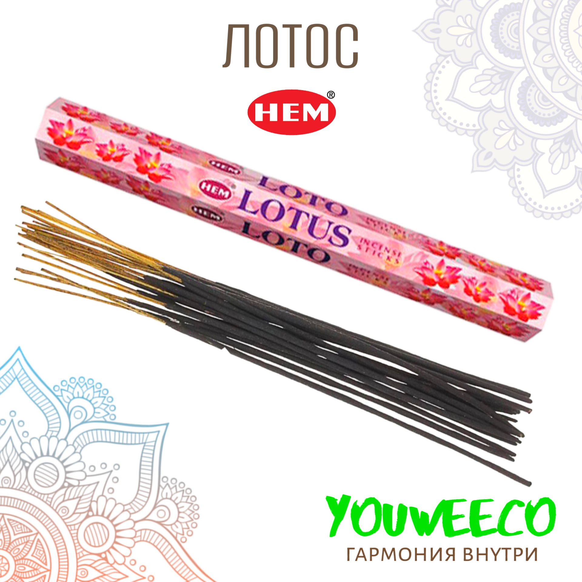 Купить Ароматические палочки / Благовония HEM " Lotus / Лотос" 20 шт