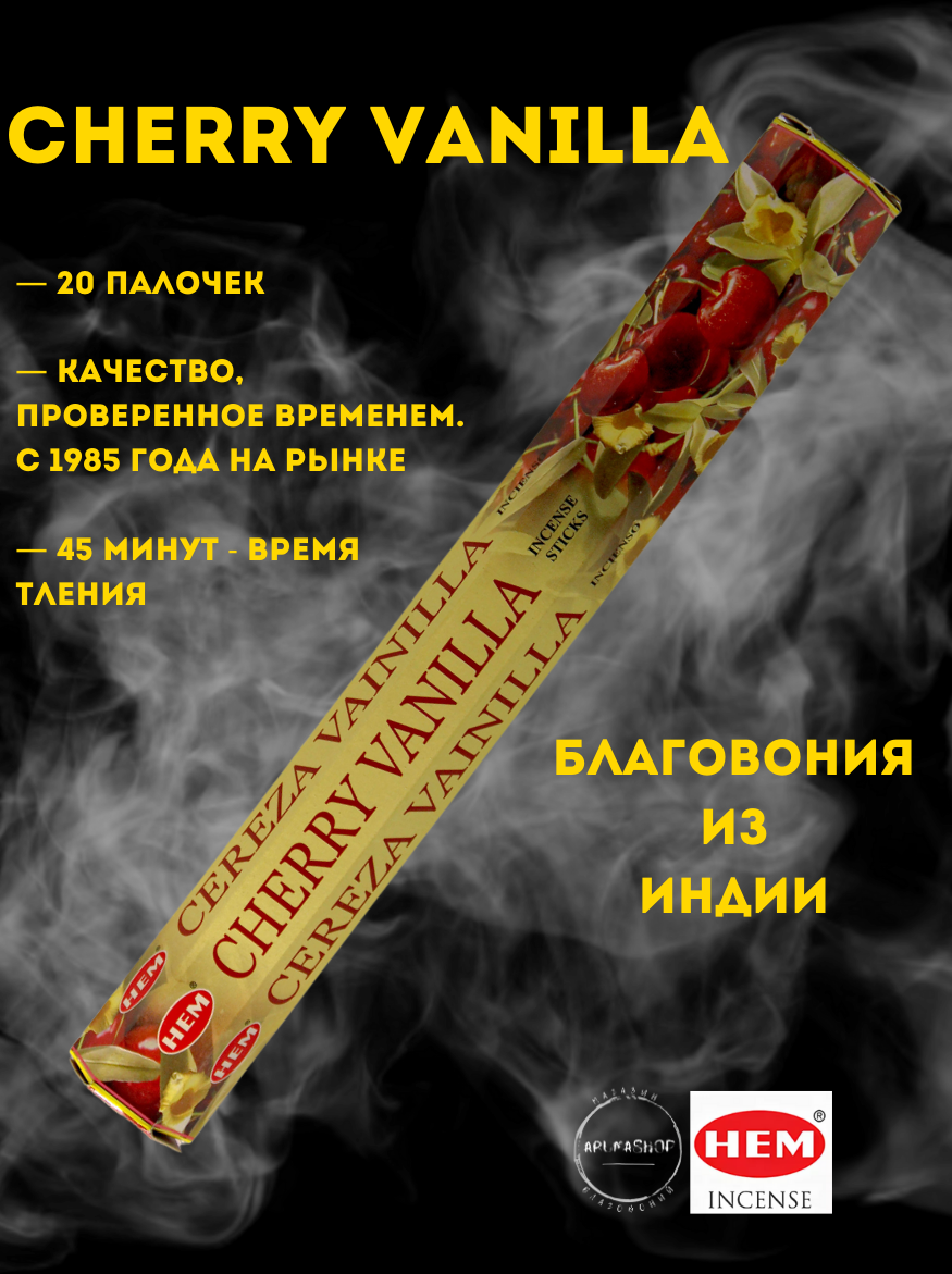 HEM Благовония "HEM Cherry Vanilla" (Ванильная вишня), шестигранник, 20 палочек