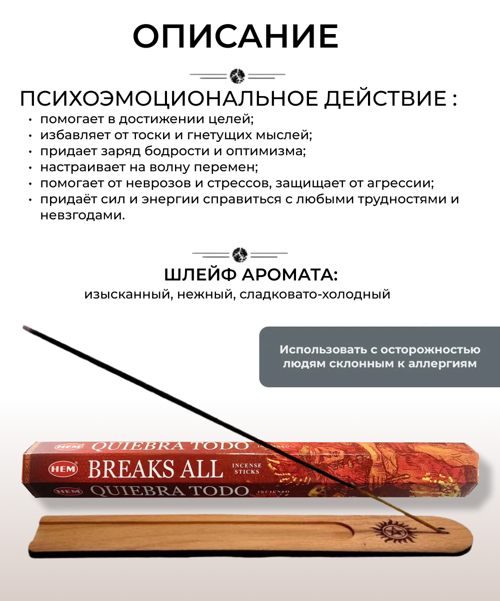 Купить Благовония HEM 6-гр. Breaks All разрушающие препятствия Ароматические палочки 20 шт в упаковке