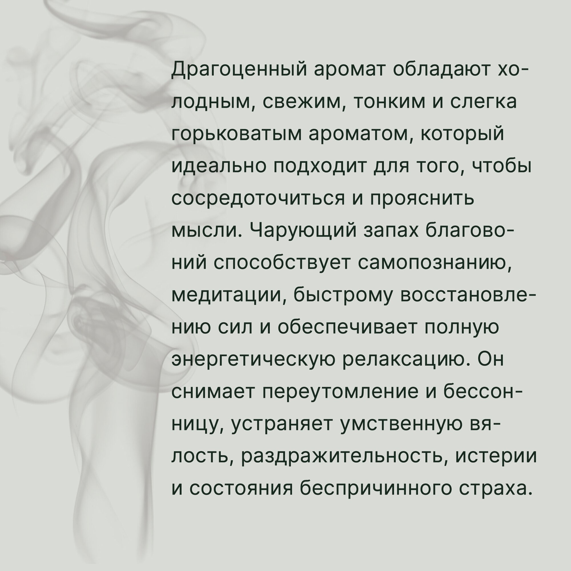 | Дополнительная информация | Воскуривание благовоний – настоящее искусство. Соблюдение всех нюансов позволит не только насладиться приятным ароматом, но и извлечь из этого пользу: - установите ароматическую палочку на специальную подставку (это аксессуар, защищающий мебель от пепла и произвольного возгорания, благодаря чему вы сможете спокойно насладиться сеансом ароматерапии); - зажгите изделие (убедитесь, что появилось небольшое пламя); - затем, после 5-10 секунд потушите его и оставьте тлеть (кончик благовония должен быть красного цвета); - чтобы полностью погасить ароматическую палочку, нужно тлеющим концом воткнуть ее в песок или землю в цветочном горшке. |