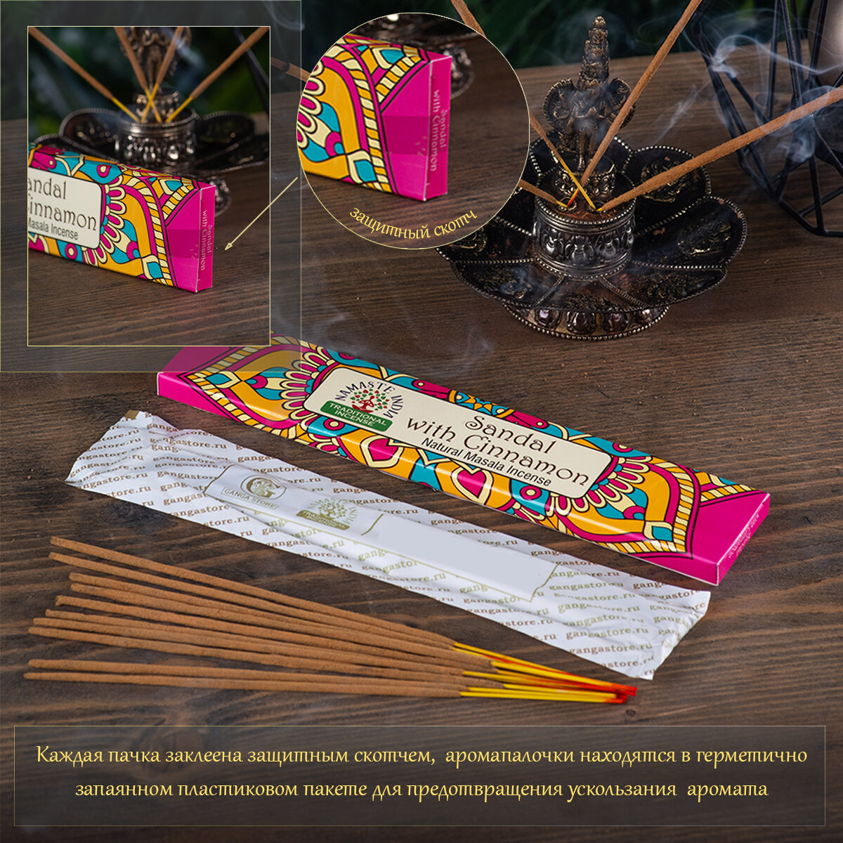 SANDAL WITH CINNAMON Natural Masala Incense, Namaste India (сандал С корицей натуральные масала благовония, Намасте Индия), уп. 15 г.