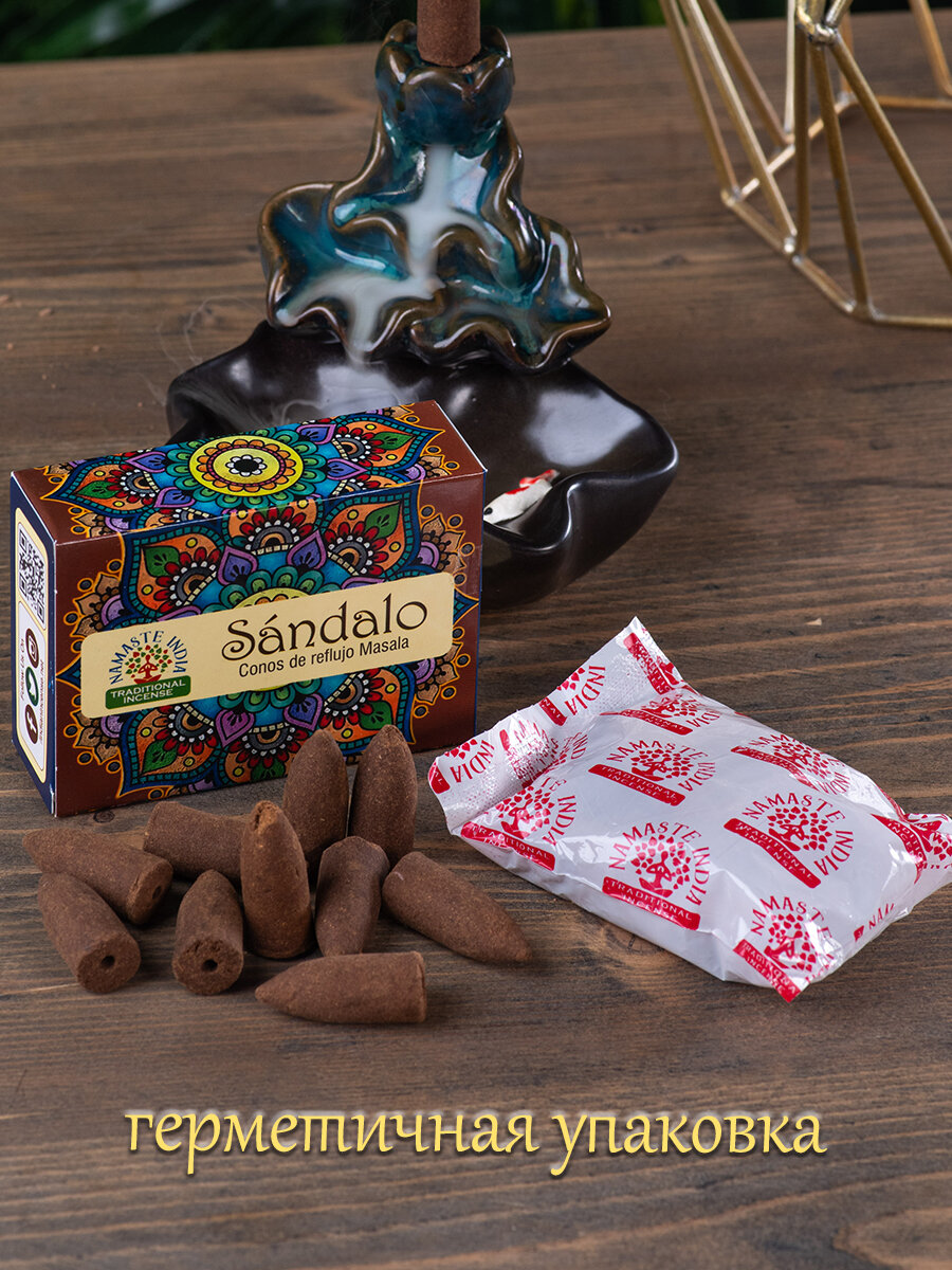 Купить Благовония Orkay Сандал Sandalwood ароматические конусы стелющийся дым, 1 уп 10 шт, 35 г