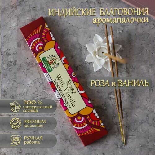 ROSE WITH VANILLA Natural Masala Incense, Namaste India (роза С ванилью натуральные масала благовония, Намасте Индия), уп. 15 г.