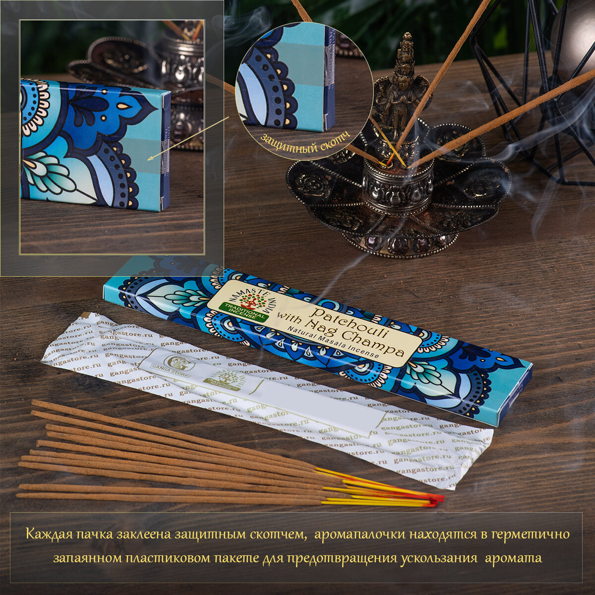Купить Индийские благовония Orkay Пачули и Нагчампа, Patchouli + Nag Champa, пыльцовые ароматические палочки для дома и офиса 15 гр: 12-15 штук