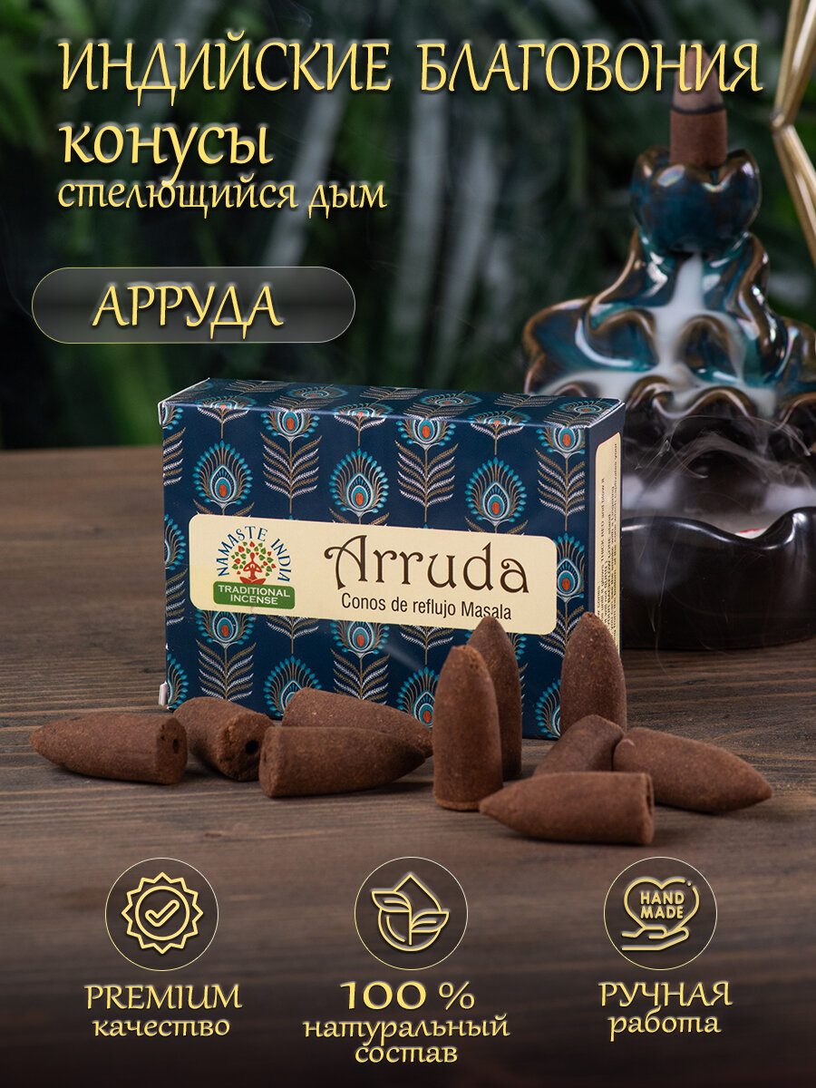 Благовония конусы стелющийся дым Orkay Арруда Arruda, 35 г, 10 ароматических конусов, Индия