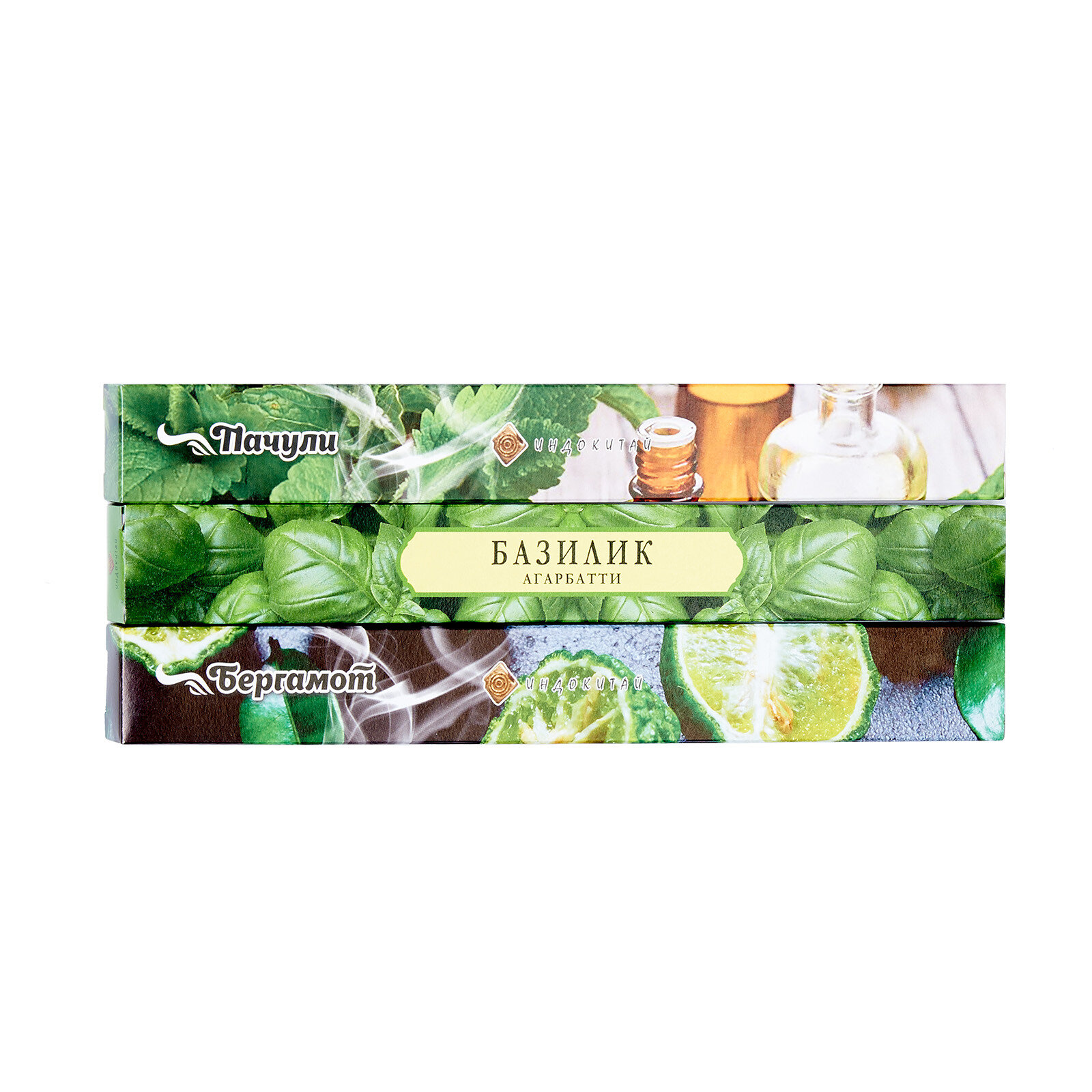 Благовония, Ароматические палочки,"Индокитай"(набор 60шт/3 аромата): Пачули, Базилик, Бергамот