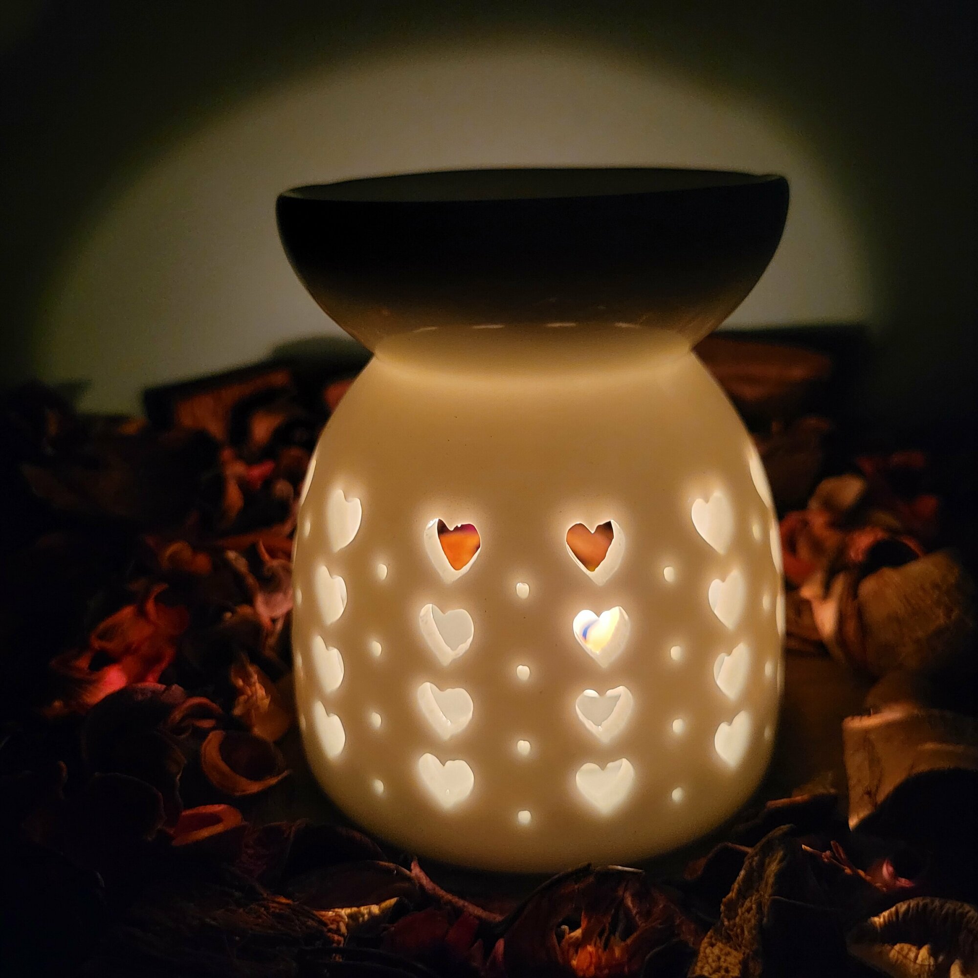 Купить Аромалампа керамическая для эфирных масел и кубиков аромавоска "Сердечки"