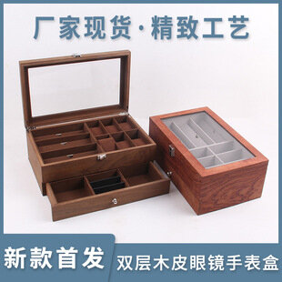 Шкатулка большая двухуровневая для хранения 10 часов, 5 очков и украшений CloxBox W119 Черная