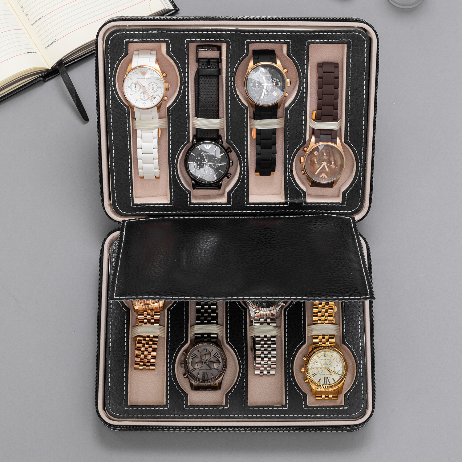 Шкатулка для часов транспортировочная CloxBox W106-B Черная экокожа, замок молния интересное: