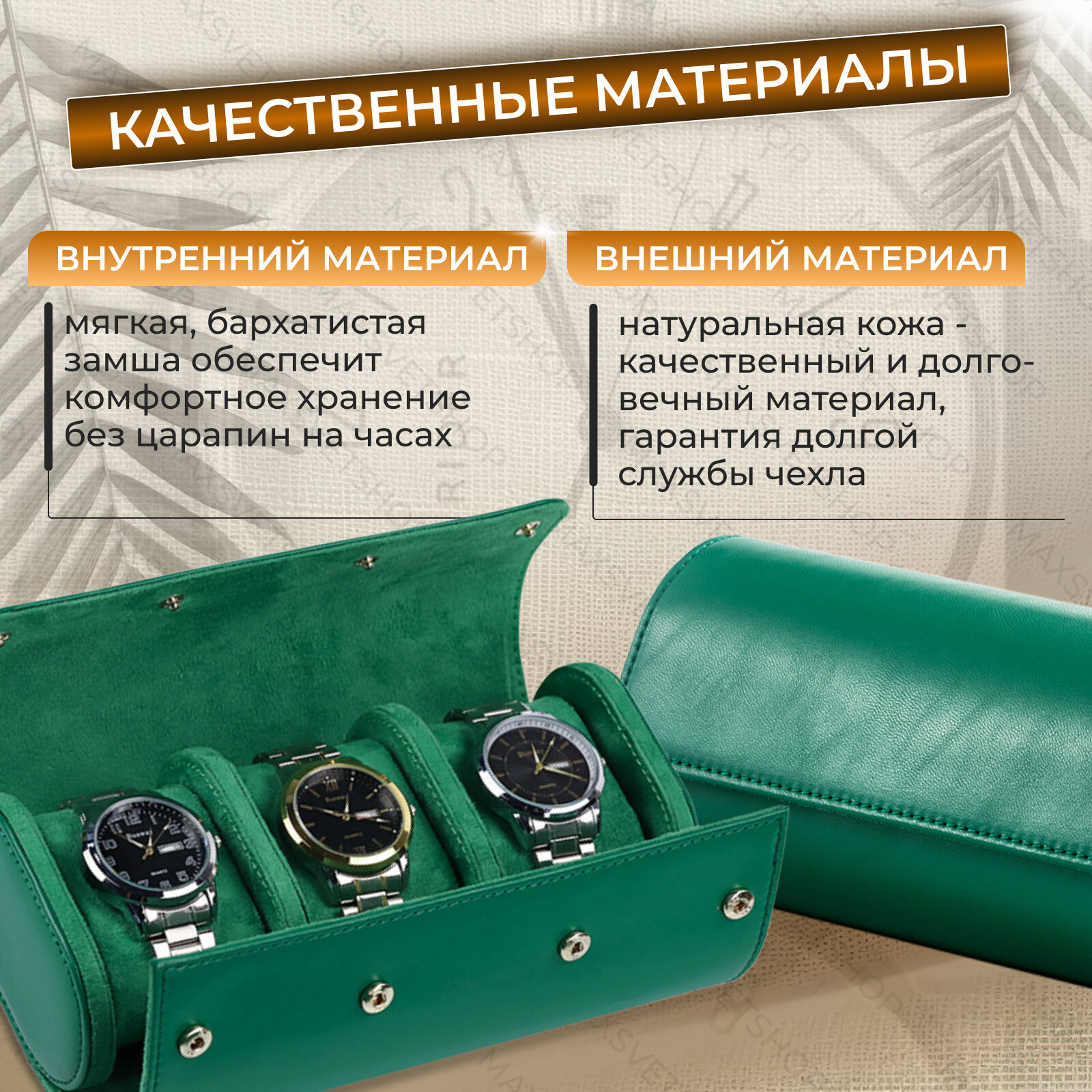 Шкатулка для часов из высококачественной натуральной кожи, изумрудный интересное: