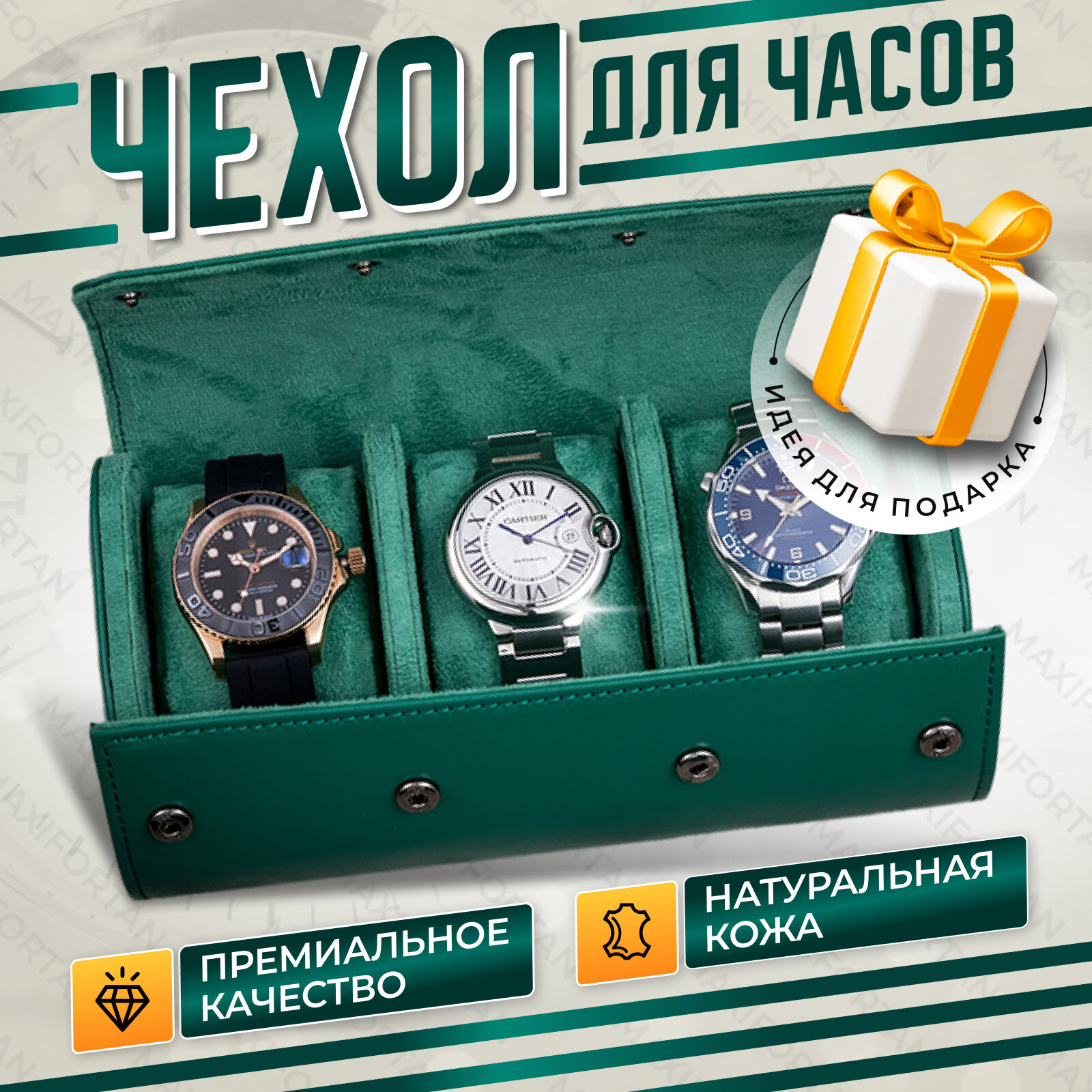 Купить Чехол F-MAX из высококачественной натуральной кожи для хранения часов с 3 съемными отделениями и ручной отделкой, изумрудный