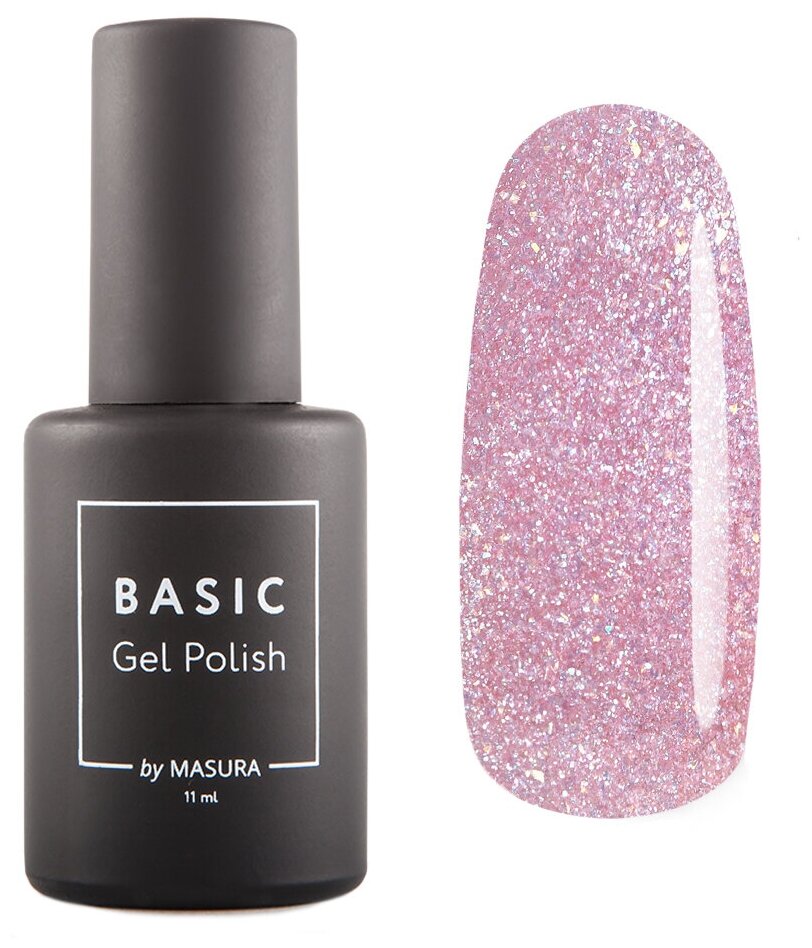 MASURA, Гель-лак BASIC Горная Вершина, 11 мл (розово-сиреневый, с серебристыми микроблестками и золотистой фольгой, полупрозрачный.)