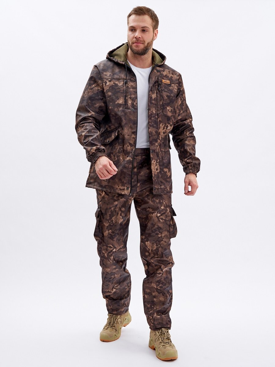 Костюм мужской для рыбалки и охоты демисезонный подклад флис KATRAN горка деми +5С (полофлис, коричневый КМФ), Размер: 60-62 Рост: 182-188