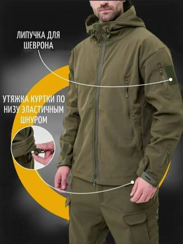 Тактический теплый мужской костюм с капюшоном SOFTSHELL