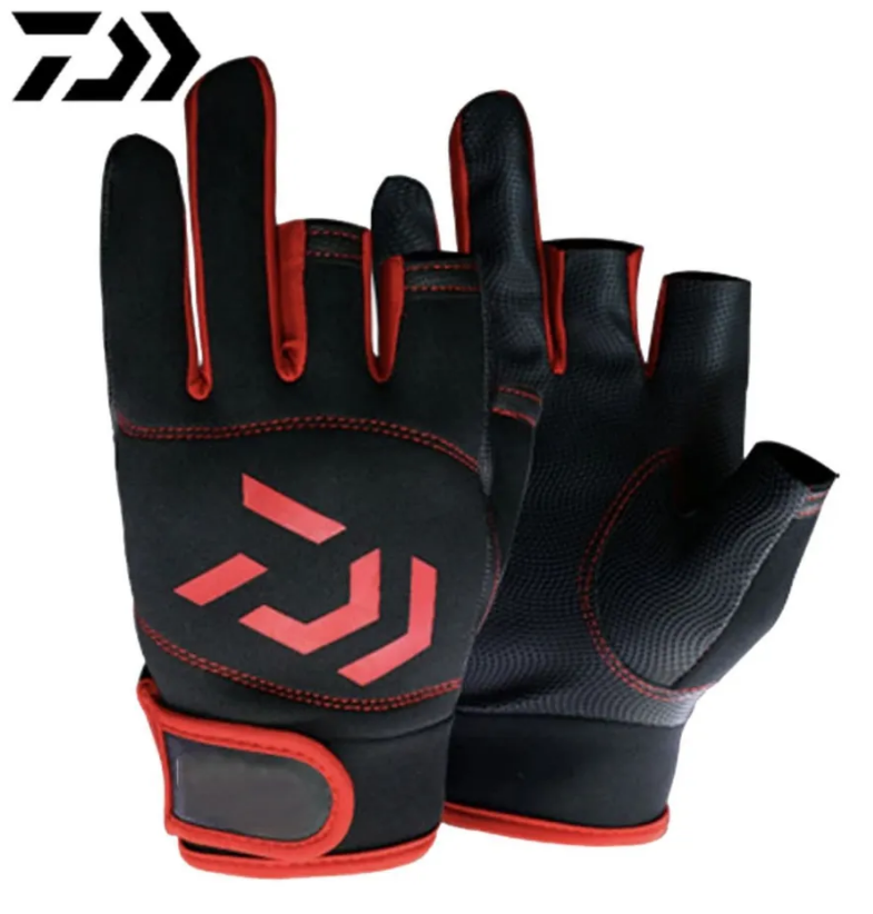 Перчатки для спиннинга, охоты, туризма с 3-мя открытыми пальцами, неопреновые, красный интересное: