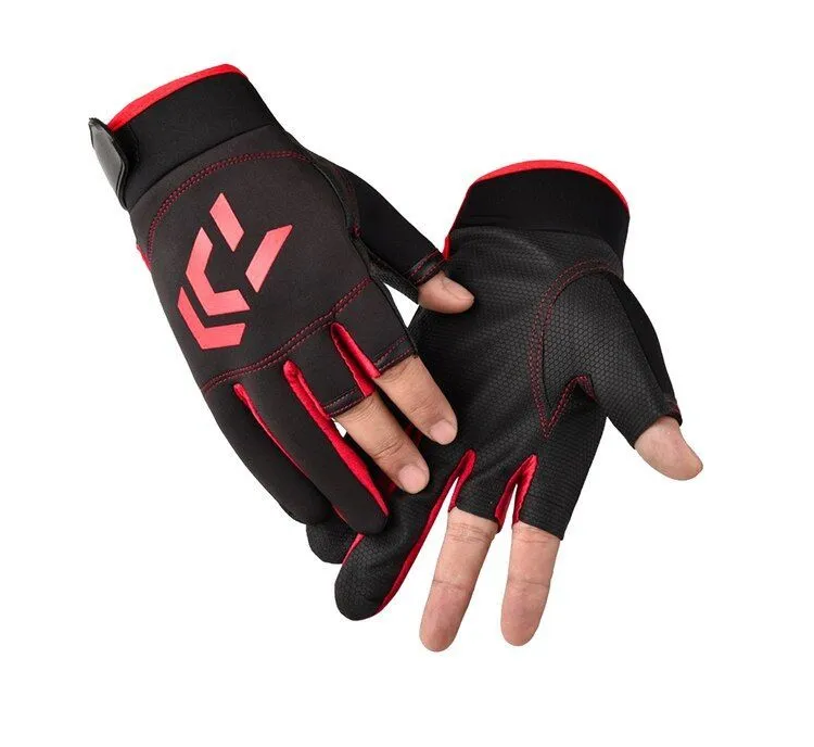 Купить Перчатки для спиннинга, охоты, туризма с 3-мя открытыми пальцами, неопреновые, красный