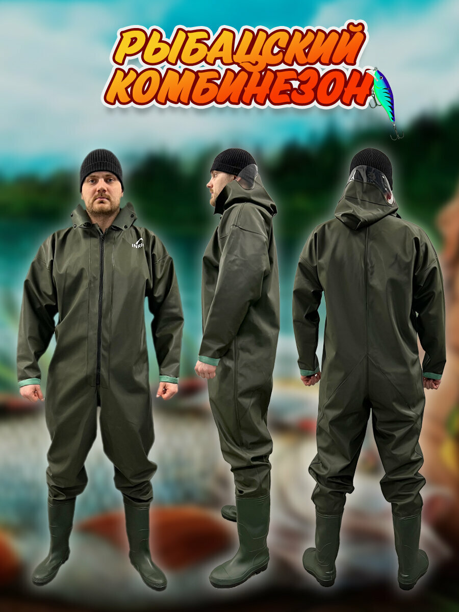 Вейдерсы (забродники) для рыбалки и охоты, костюм рыбацкий резиновый забродный с сапогами, резиновая одежда для рыбалки 46 размер