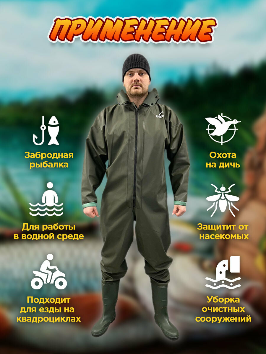 Вейдерсы (забродники) для рыбалки и охоты, костюм рыбацкий резиновый забродный с сапогами, резиновая одежда для квадроцикла 44 размер