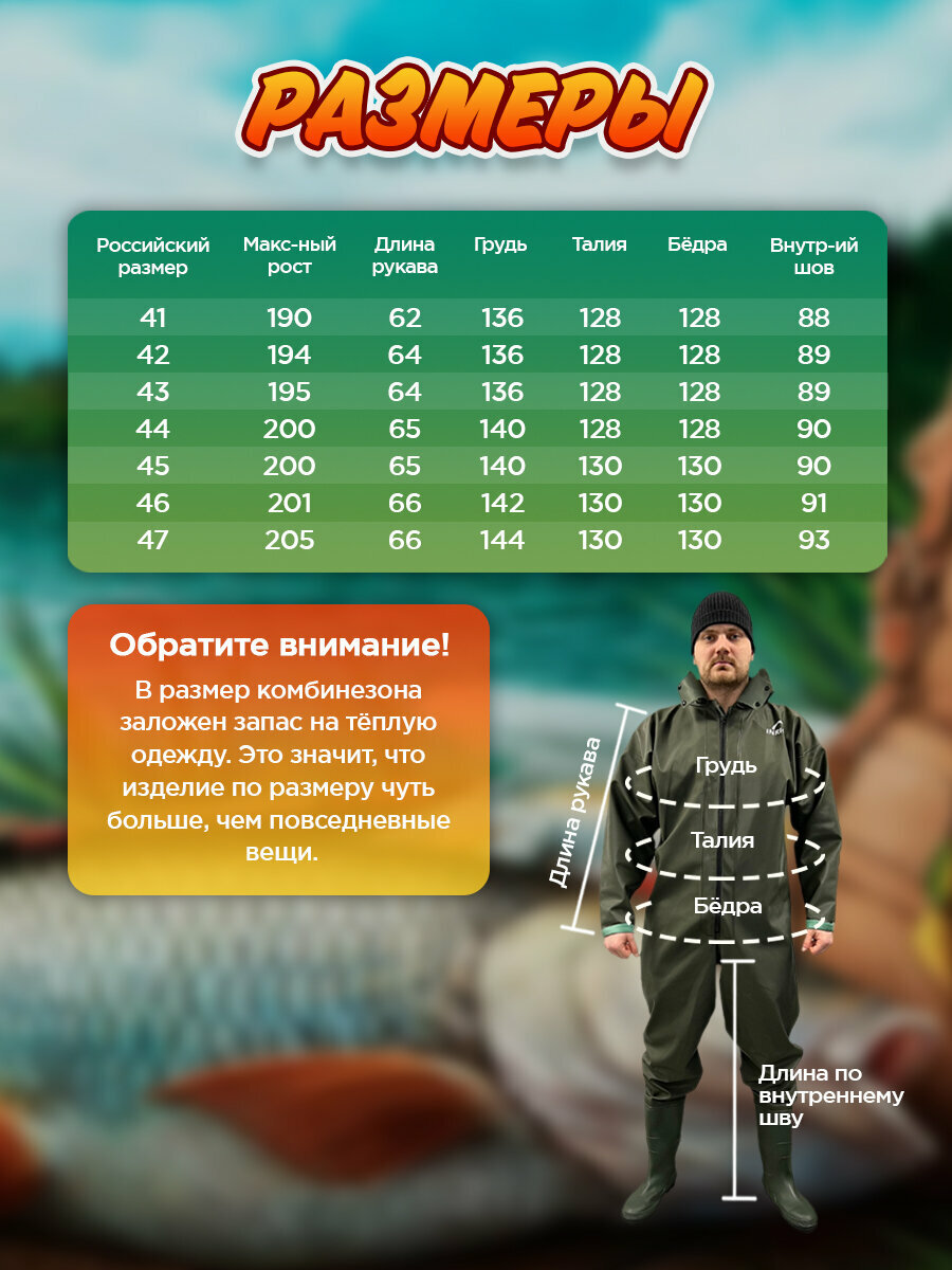 Вейдерсы (забродники) для рыбалки и охоты, костюм рыбацкий резиновый забродный с сапогами, костюм резиновая одежда 47 размер
