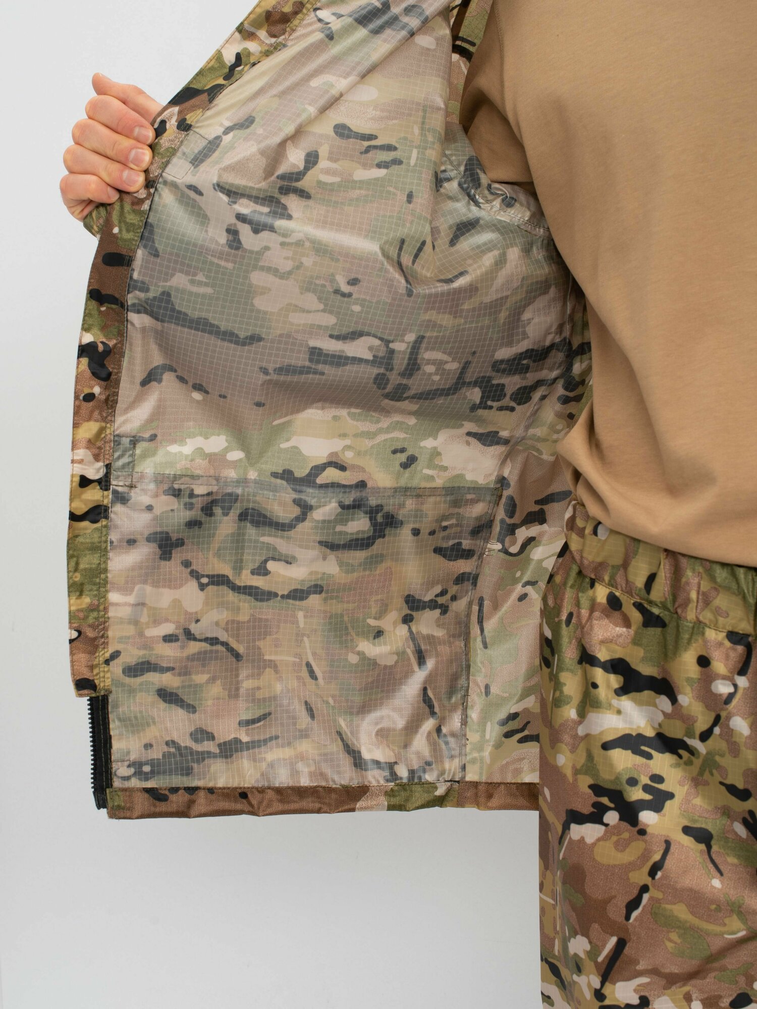 Костюм-дождевик мужской Huntsman ВВЗ Склон-2 ветровлагозащитный туристический, для рыбалки и охоты, таффета рипстоп, цвет мультикам (р.44-46/170)