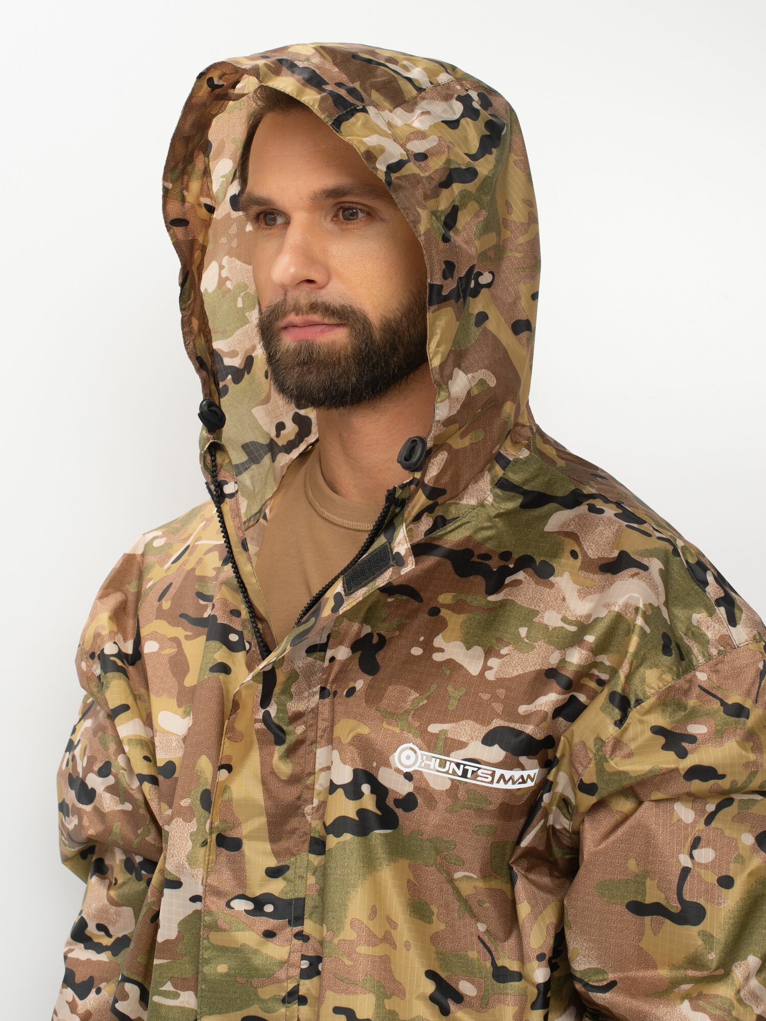Костюм-дождевик мужской Huntsman ВВЗ Склон-2 ветровлагозащитный туристический, для рыбалки и охоты, таффета рипстоп, цвет мультикам (р.48-50/176)