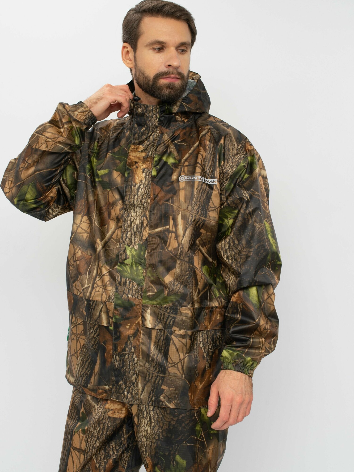 Костюм-дождевик мужской Huntsman ВВЗ Склон-2 ветровлагозащитный туристический, для рыбалки и охоты, таффета рипстоп, цвет мультикам (р.48-50/176)